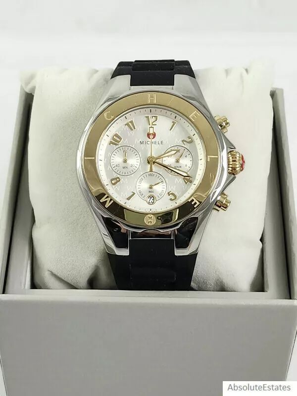 Michele Womens Tahitian Jelly Bean Two Tone Gold Silver Black Watch MWW12F000112
