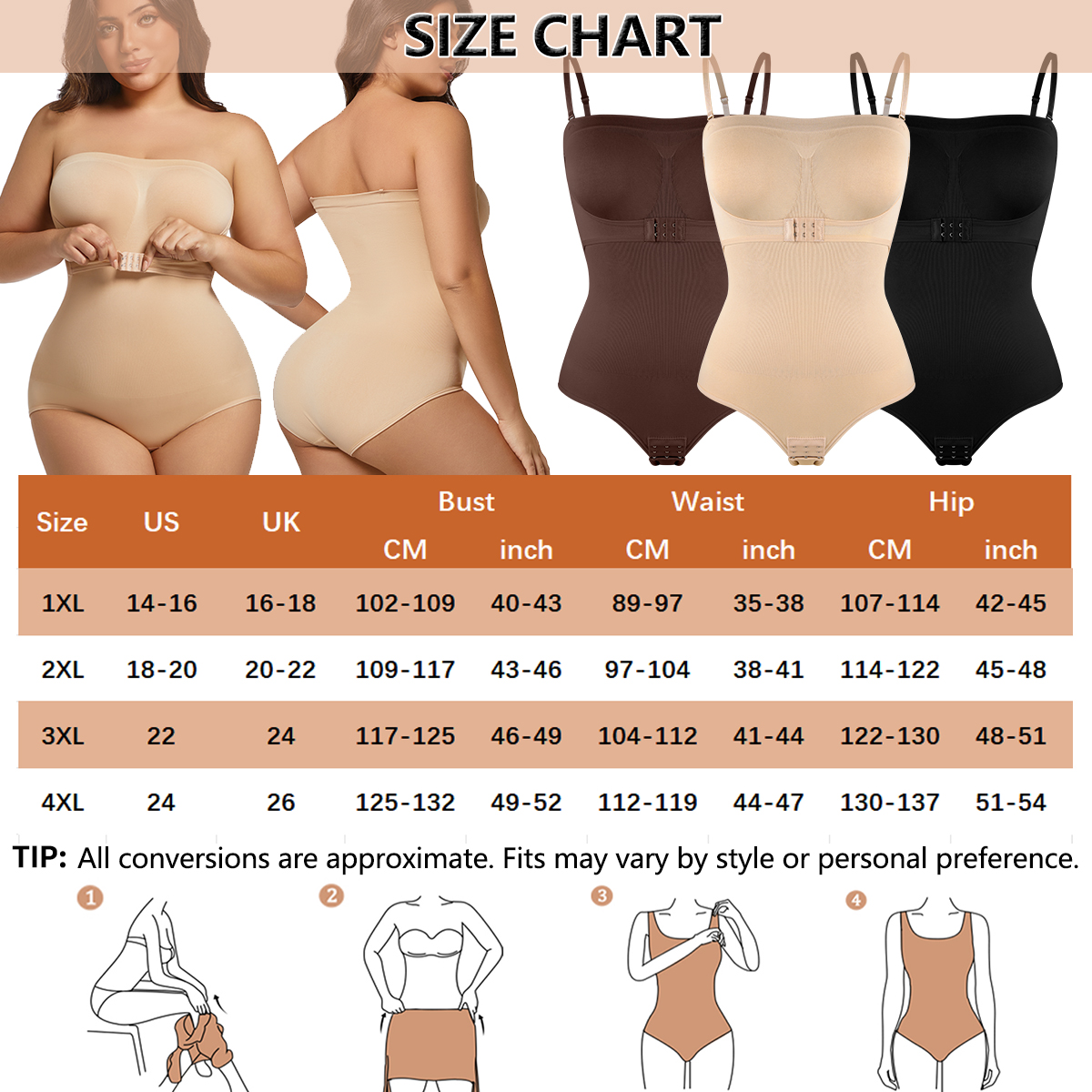 No Compression Bra & Hooks Crotch: This Strapless Bodysuit for Women One Piece Tube Tops Body Suit with No Compression Bras Fit for All Cups. The Strapless Body Shaper for Women with an Anti-slip Silicone Strip around the Top Edge that Does a Great Job of Holding Your Breast up.Hook and Eye Closure Design at Croth Make it Easy and Convenient for Toilet/Bathroom Use While Scratch-resistant Fabric Added to Care Your Skin and Make You Feel Comfortable for All Day Long.