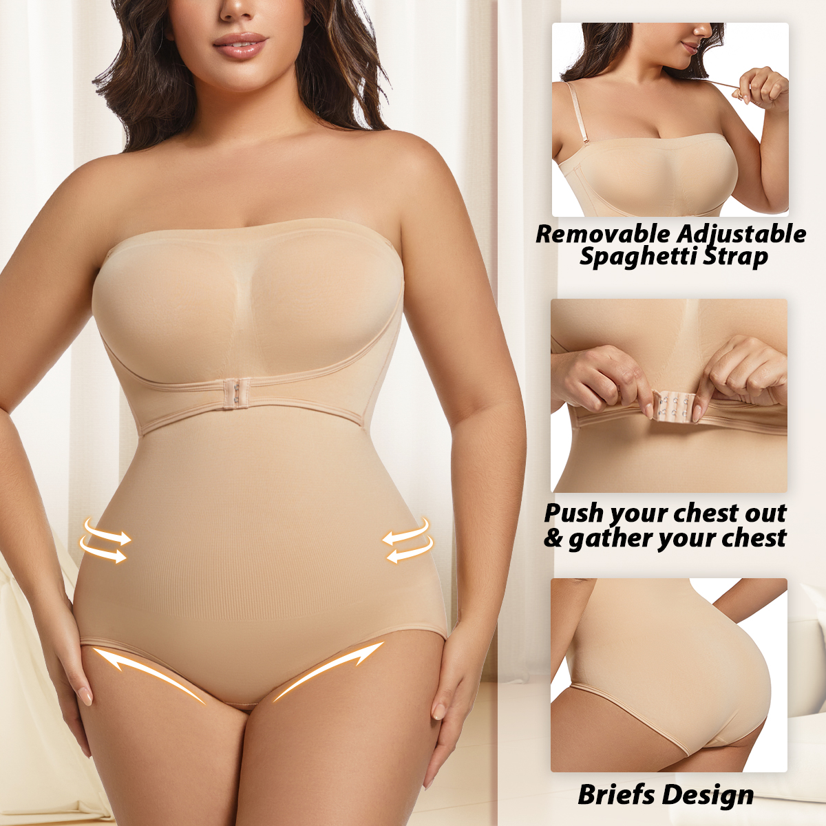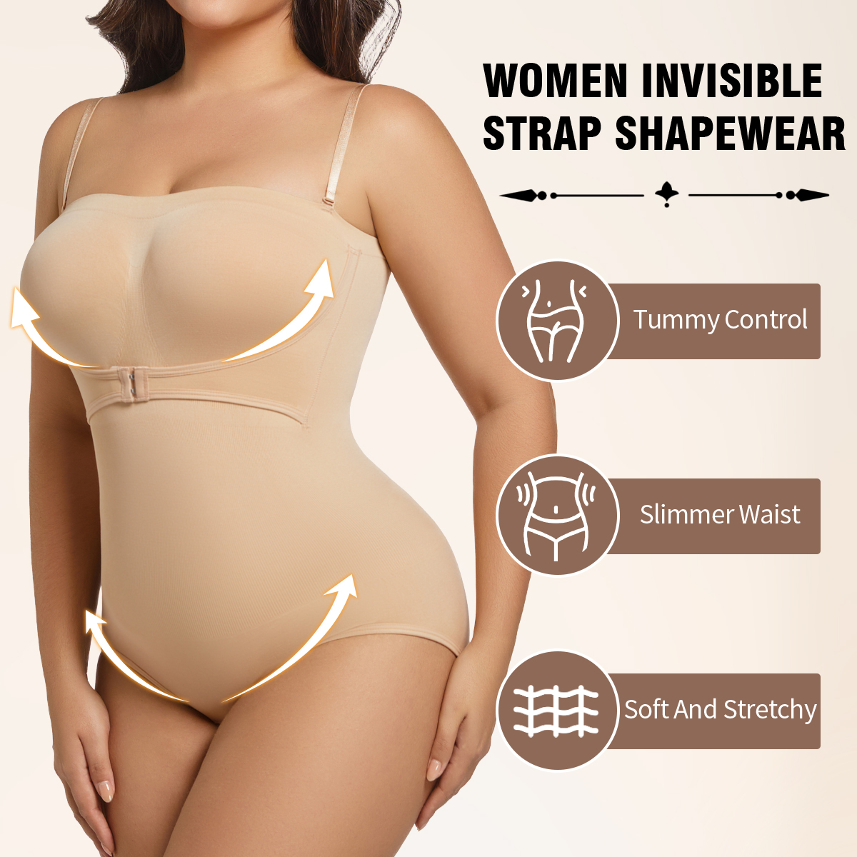 Strapless Shapewear Bodysuit: This Shapewear Bodysuit for Women Features a Removable Adjustable Spaghetti Strap Design for Versatile Styling and Convenient Using, Such as Adjustable Spaghetti Strap Bodysuit, Strapless Shapewear Tube Tops Bodysuit, Transparent Shoulder Strap, Criss Cross Back, Halter Neck Look.