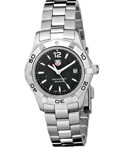 Case diameter: 28 mm. Case thickness: 9.5 mm. Fold over the double push button. Water resistant at 300 meters / 1000 feet. Tag Heuer Aquaracer Ladies Watch WAF1410.BA0823.