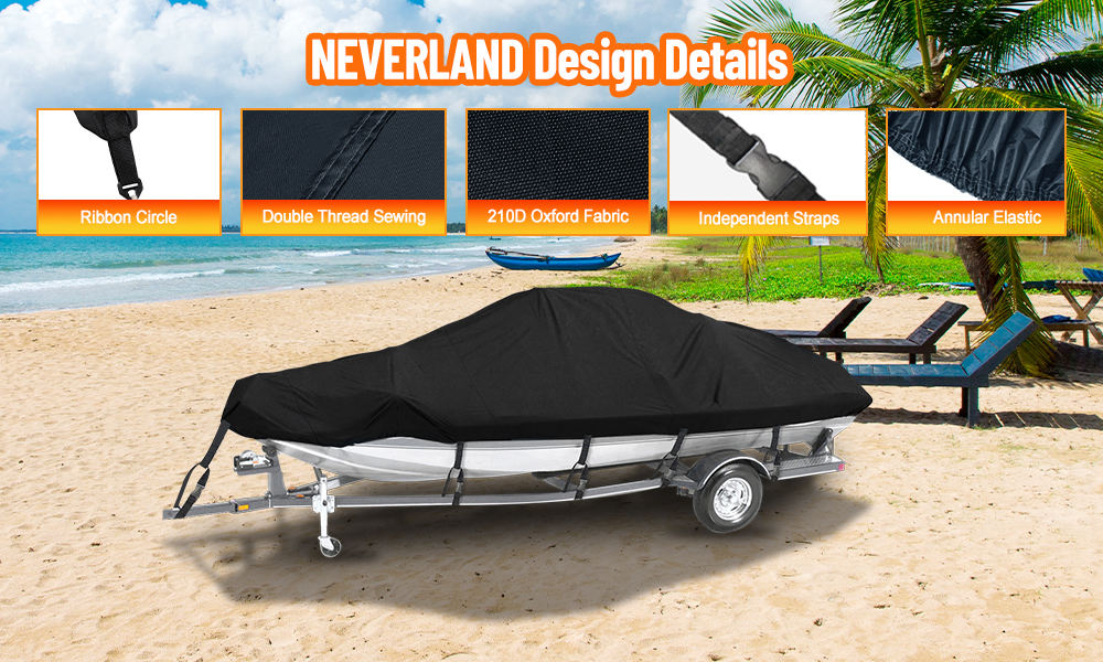 【Universal Boat Cover】---NEVERLAND Boat cover fits V shape, V-Hull, Tri-hull, Runabouts, Pro-Style bass boat and so on. This trailerable boat cover is suitable for boats up to 14-16 ft long and beam width up to 90 inches