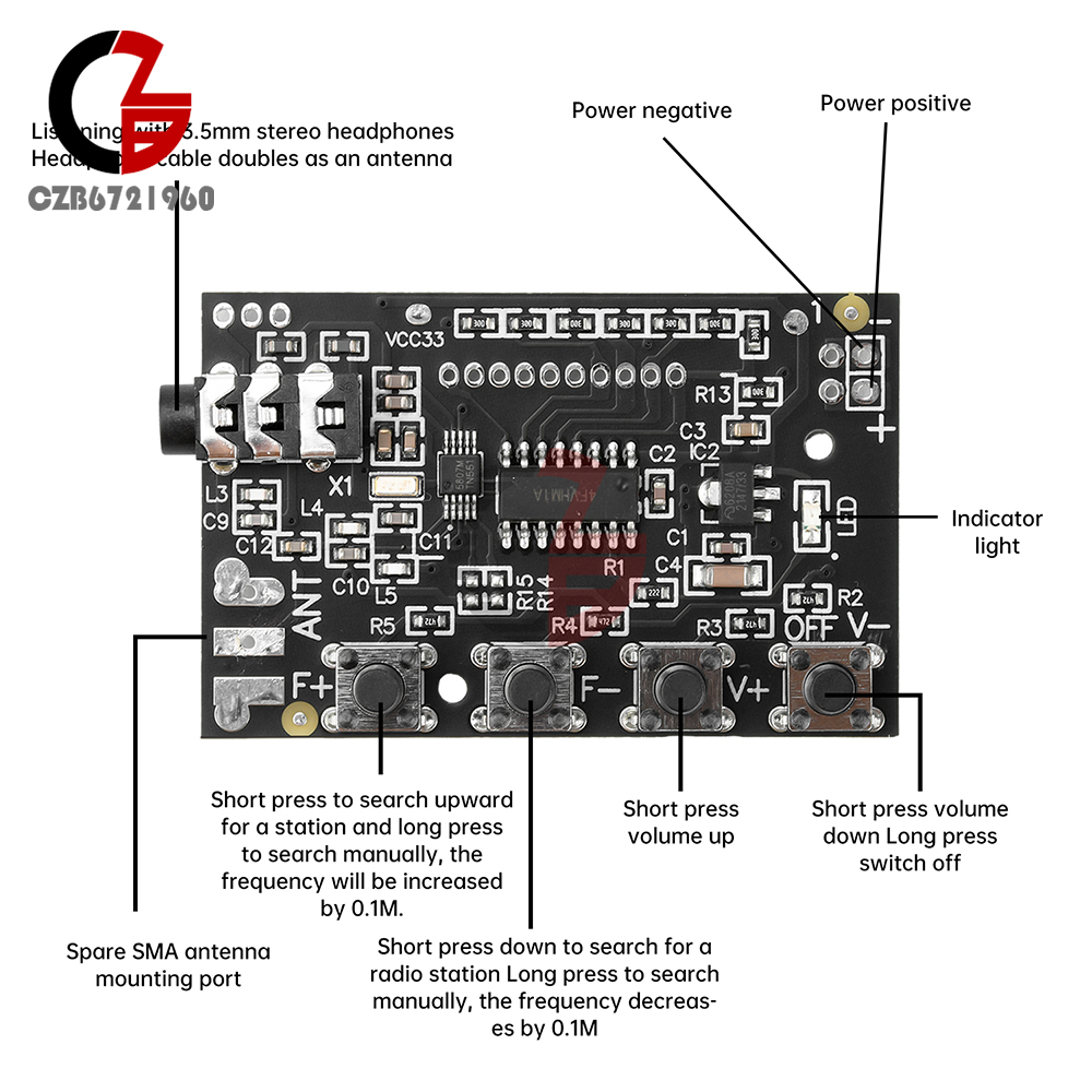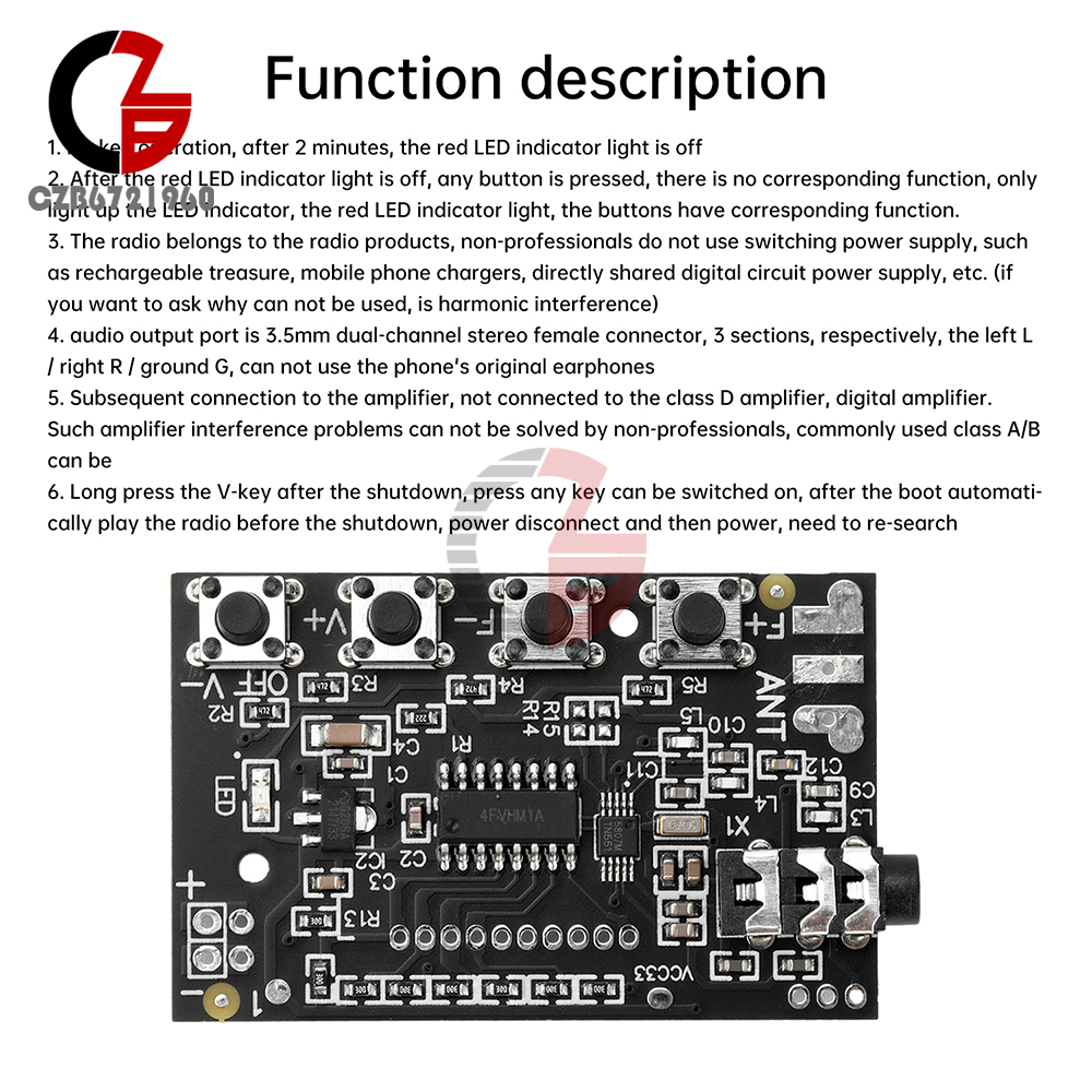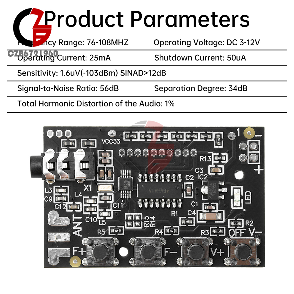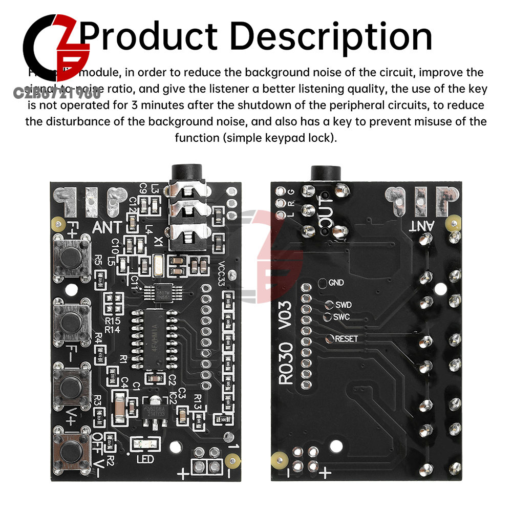 1.Support 76.0MHz to 108.0MHz frequency band, covering most of the FM broadcasting frequency range.