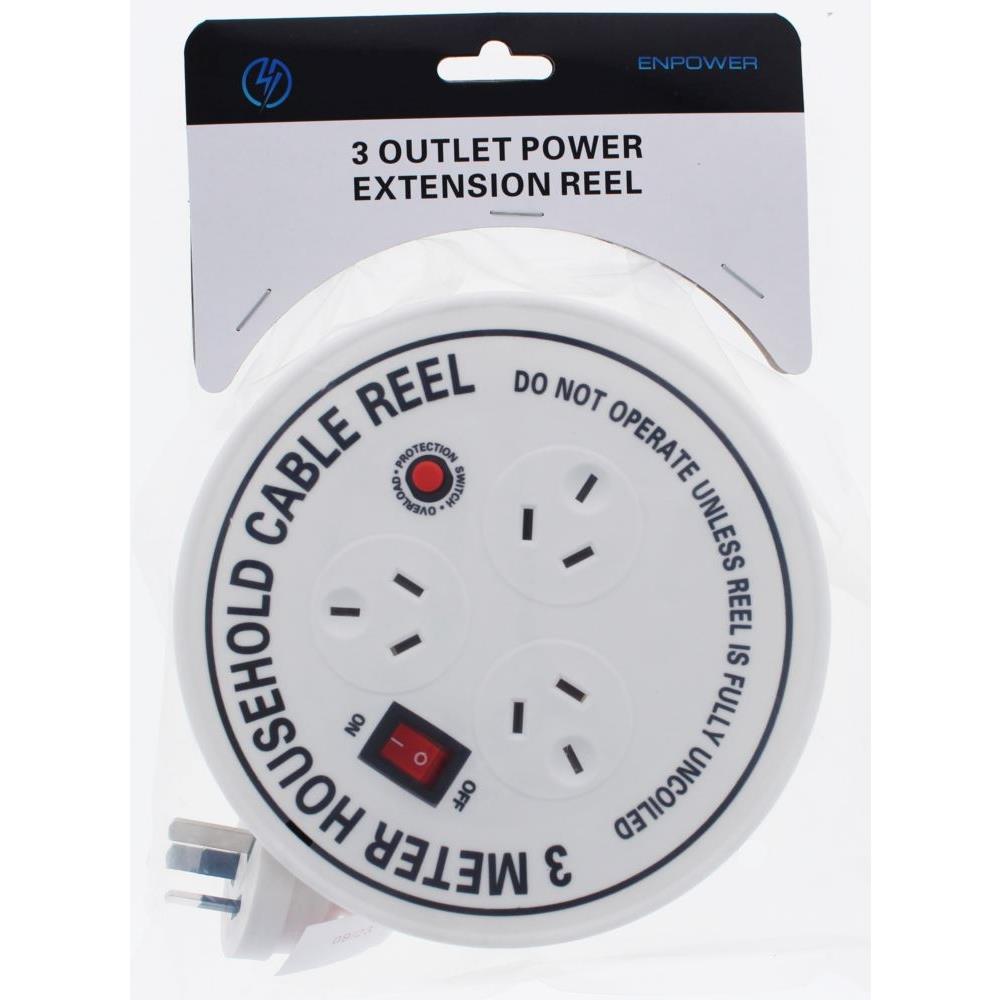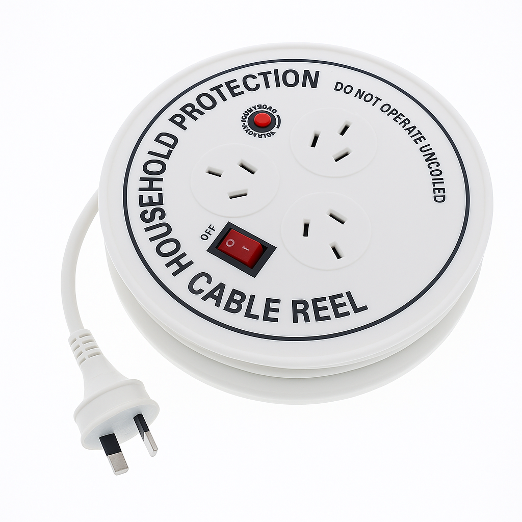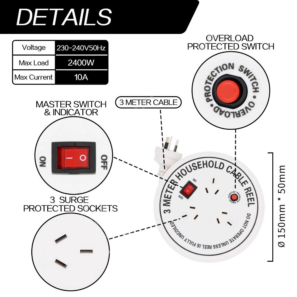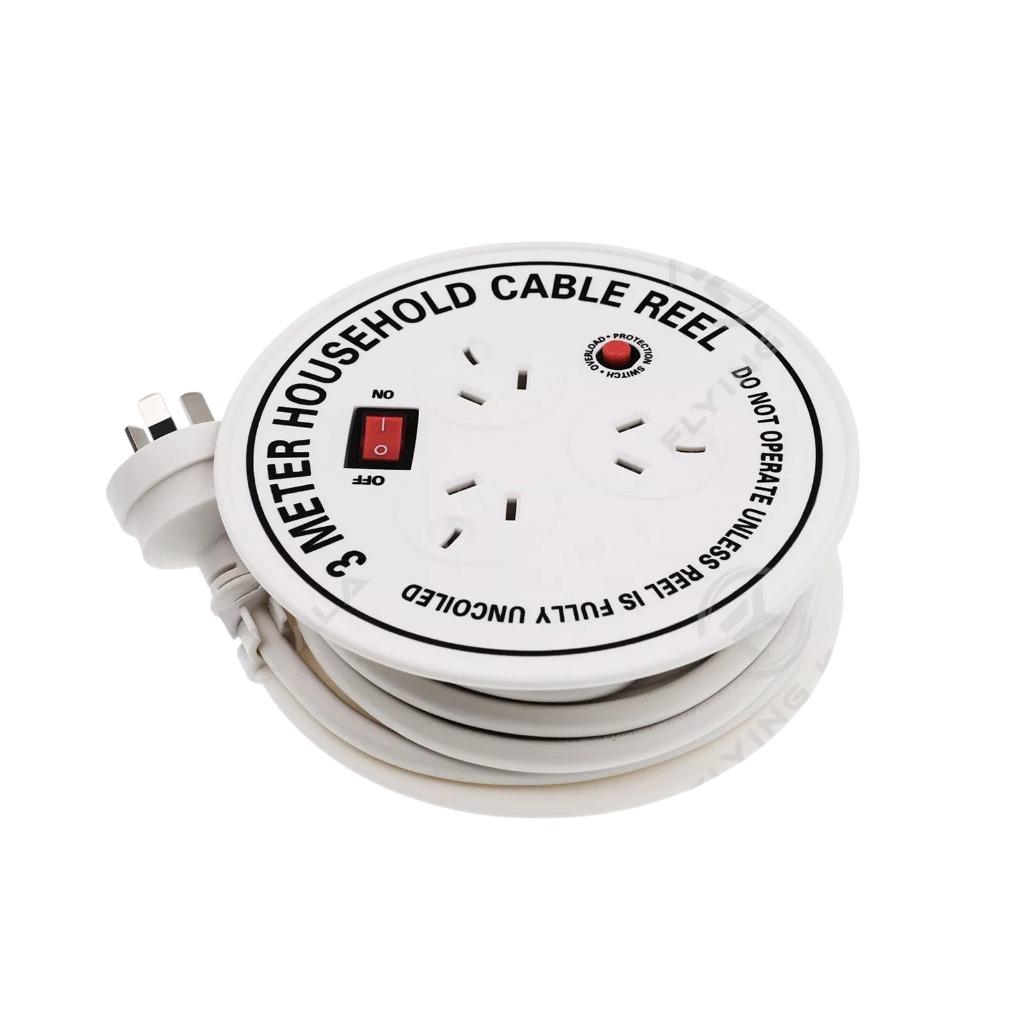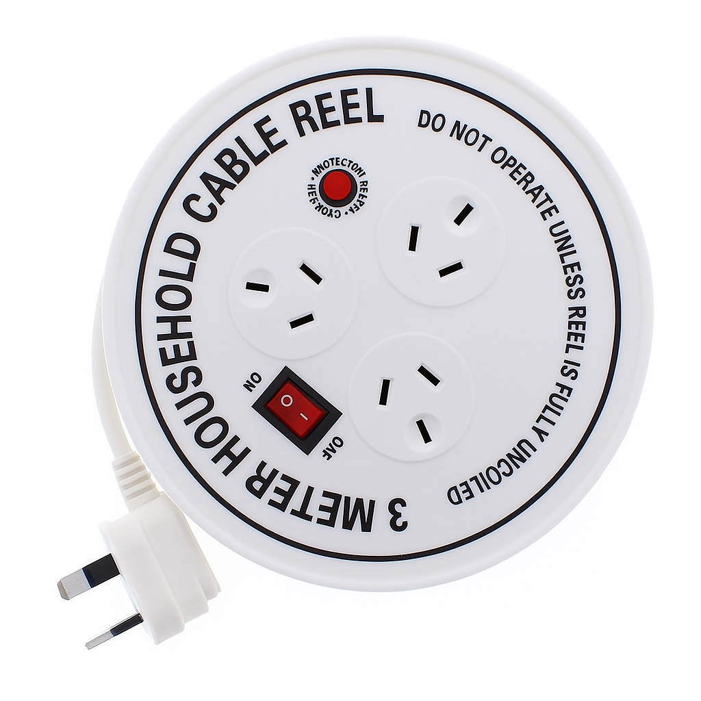 Power Board 3 Outlet & 3m Extension Cable – Round Power board with Overload Protection