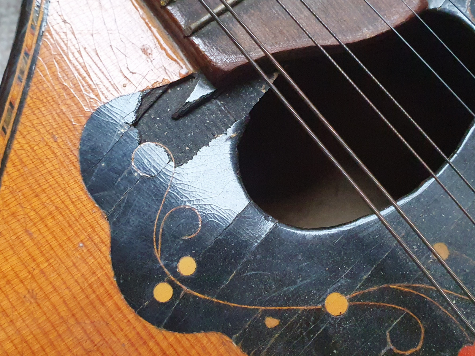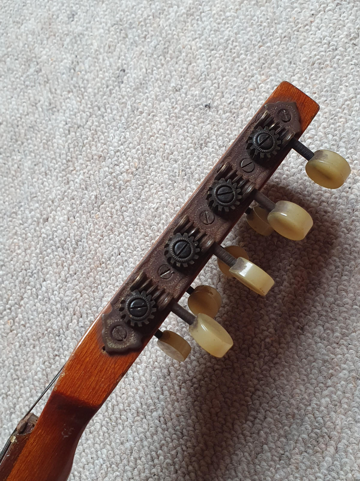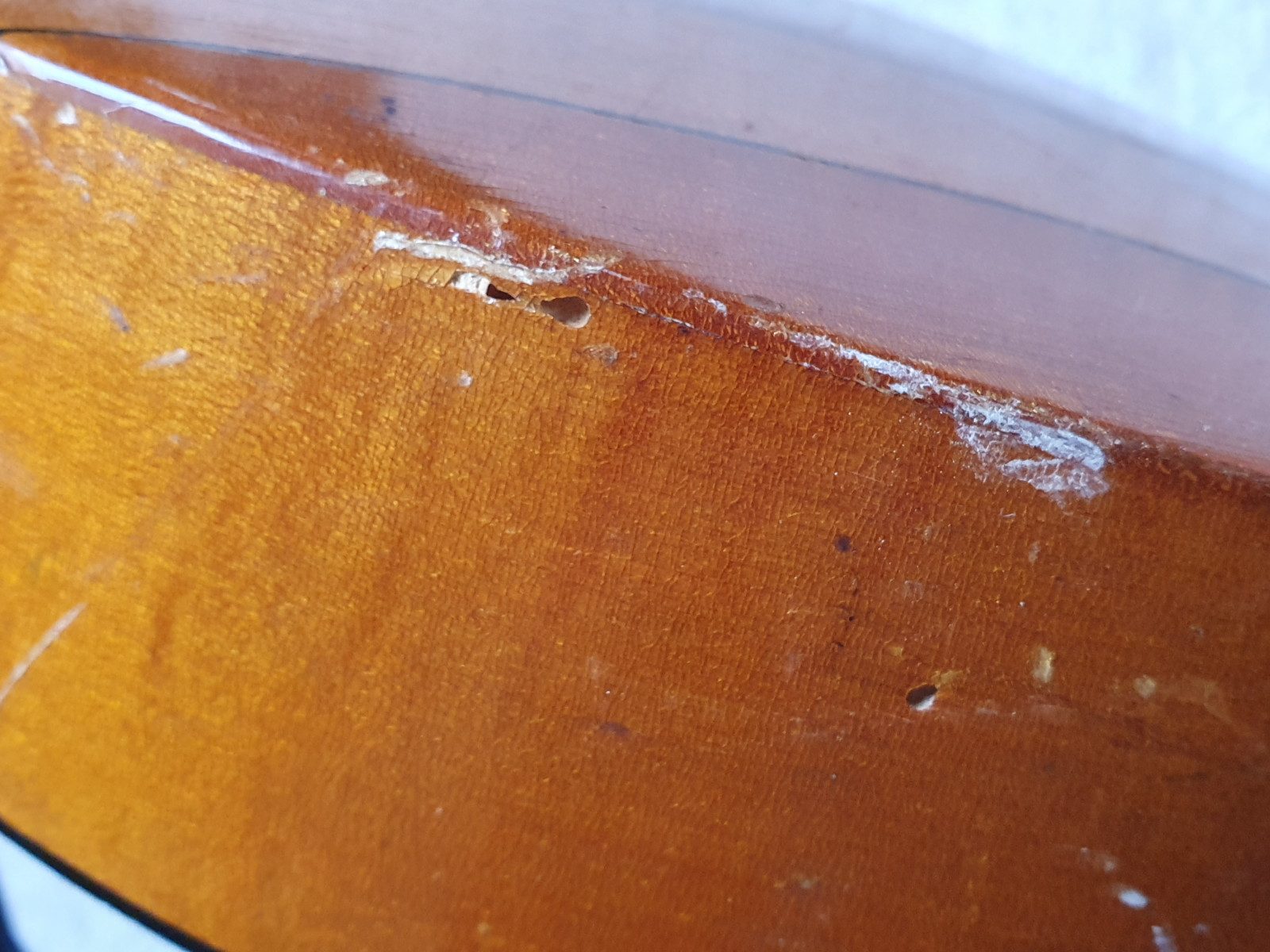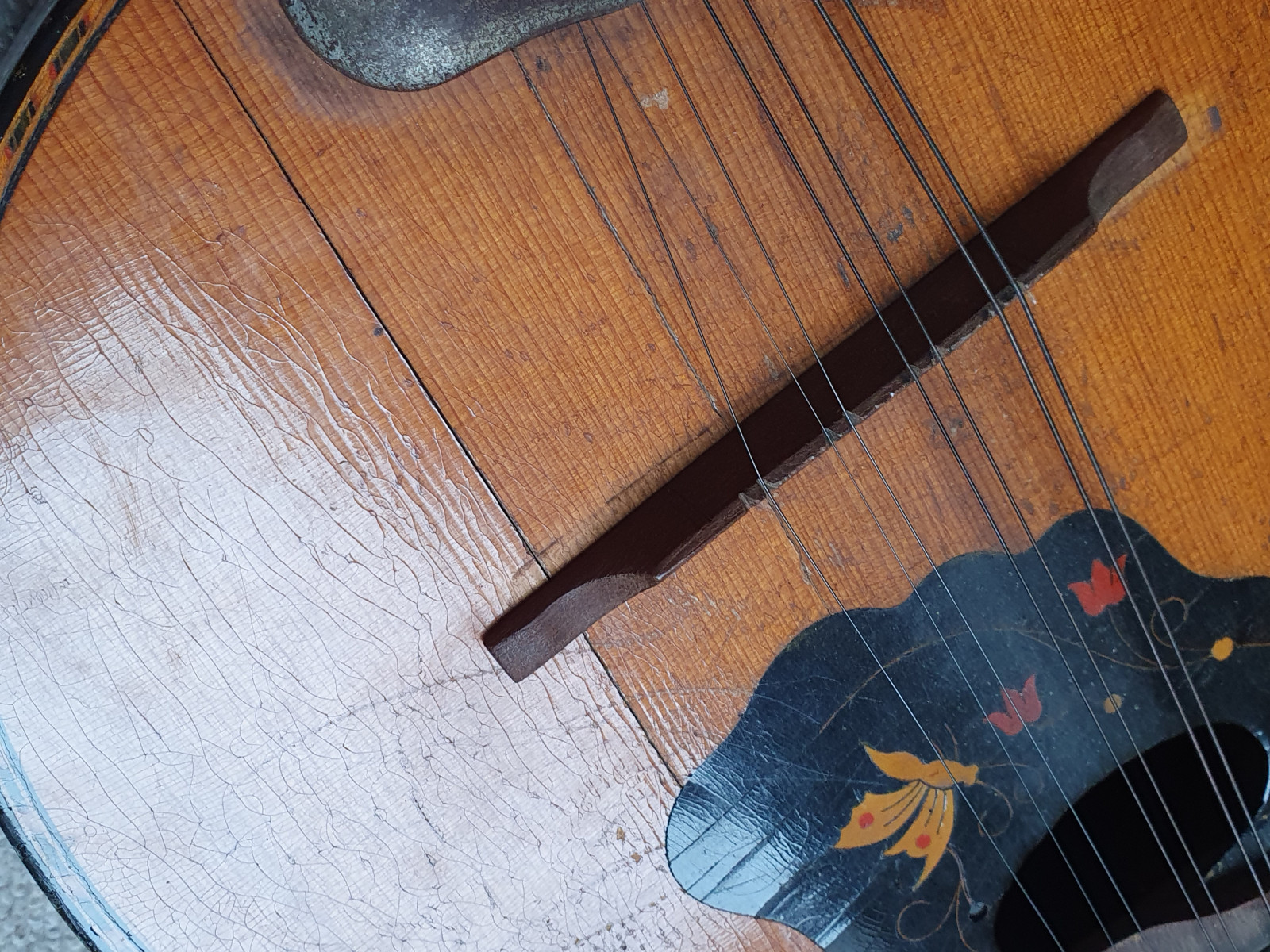 Old mandolin . There are cracks at the front and several damages all arrond the instrument. Please make sure that you see all the photos UNDER this text.. The length is approx60,5cm/23 3/4 inch. Length of the body is 12 1/4inches/ 31,5cm. The sounding length is aprox. 13 3/8inch / 34 cm. Please make sure that you see all the photos UNDER the item describtion! Instrument may needs serious repair, service and cleaning . If you have any questions, please ask. Insured shipping to USA or Canada amounts to $ 59. I will ship worldwide. Shipping several items saves shippingfees.