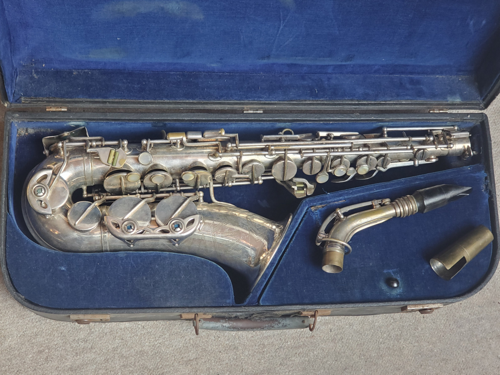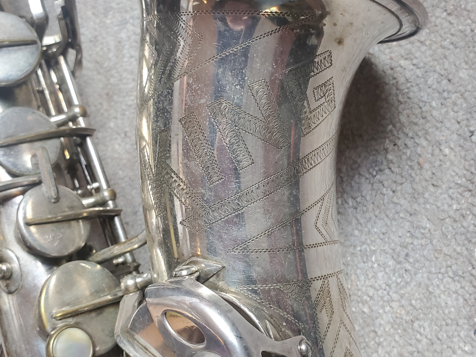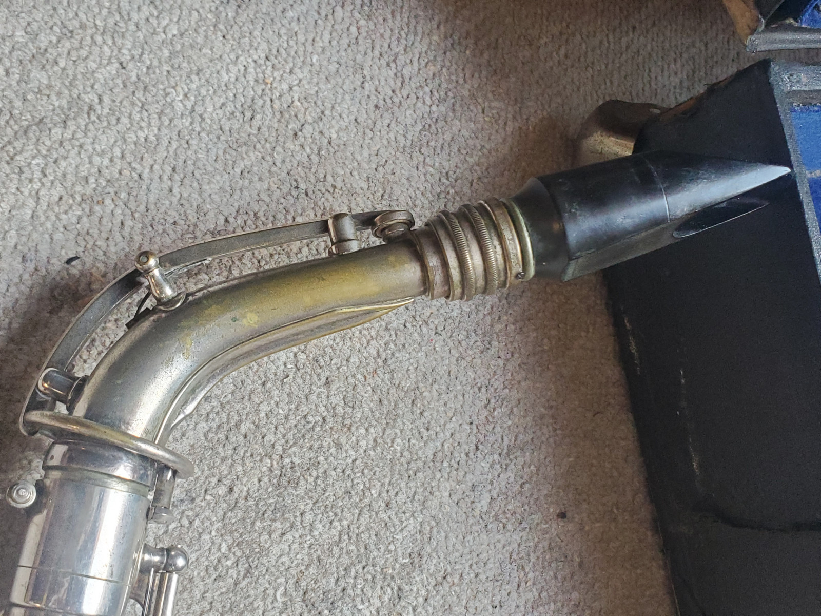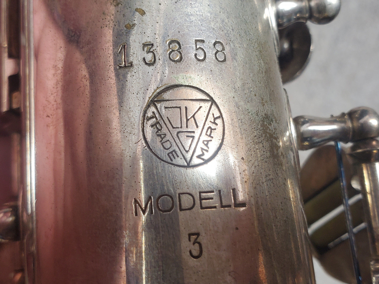 Interesting , nice and old Alto saxophone. The bell reads:" KING " The back reads: " 13858 / JKG Trade Mark / Model 3" (Julius Keilwerth Graslitz). The instrument needs some service , adjustment and cleaning. There is a small dent next to the thumb rest It comes in a used case and a noname mouthpiece. Of course it will be packed very well for the transit. Please also view my other auctions for instruments. Postage to USA or Canada is 79 USD.