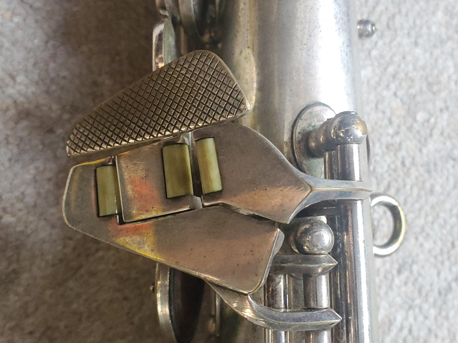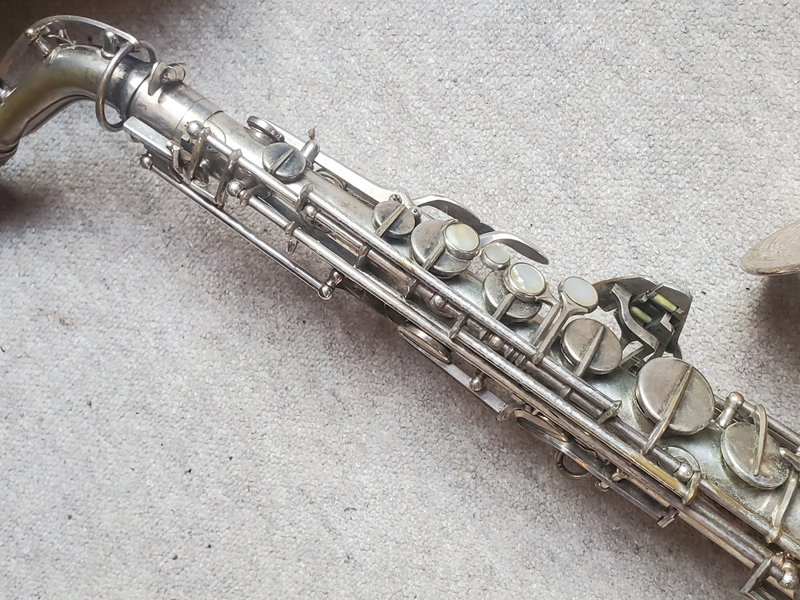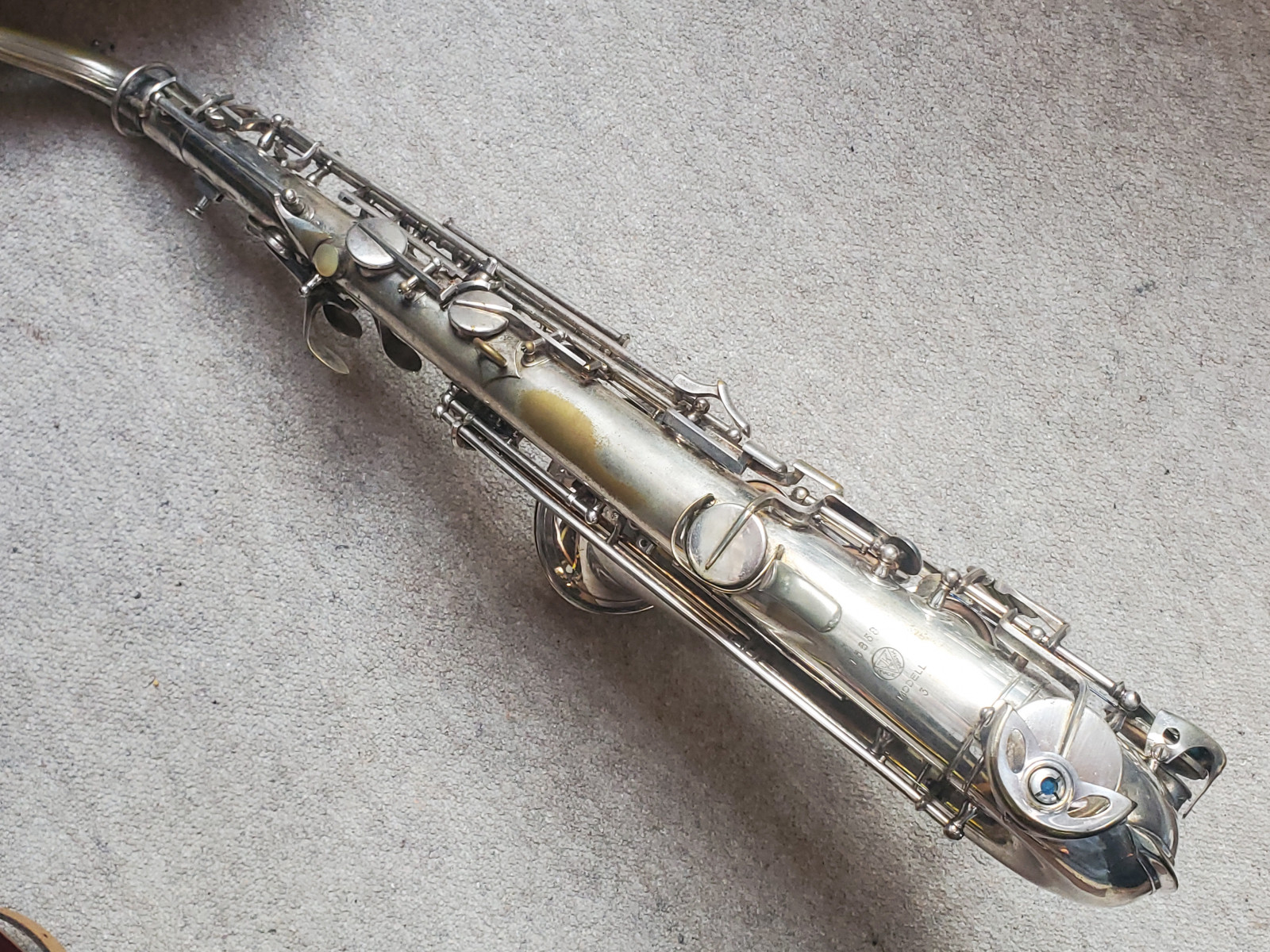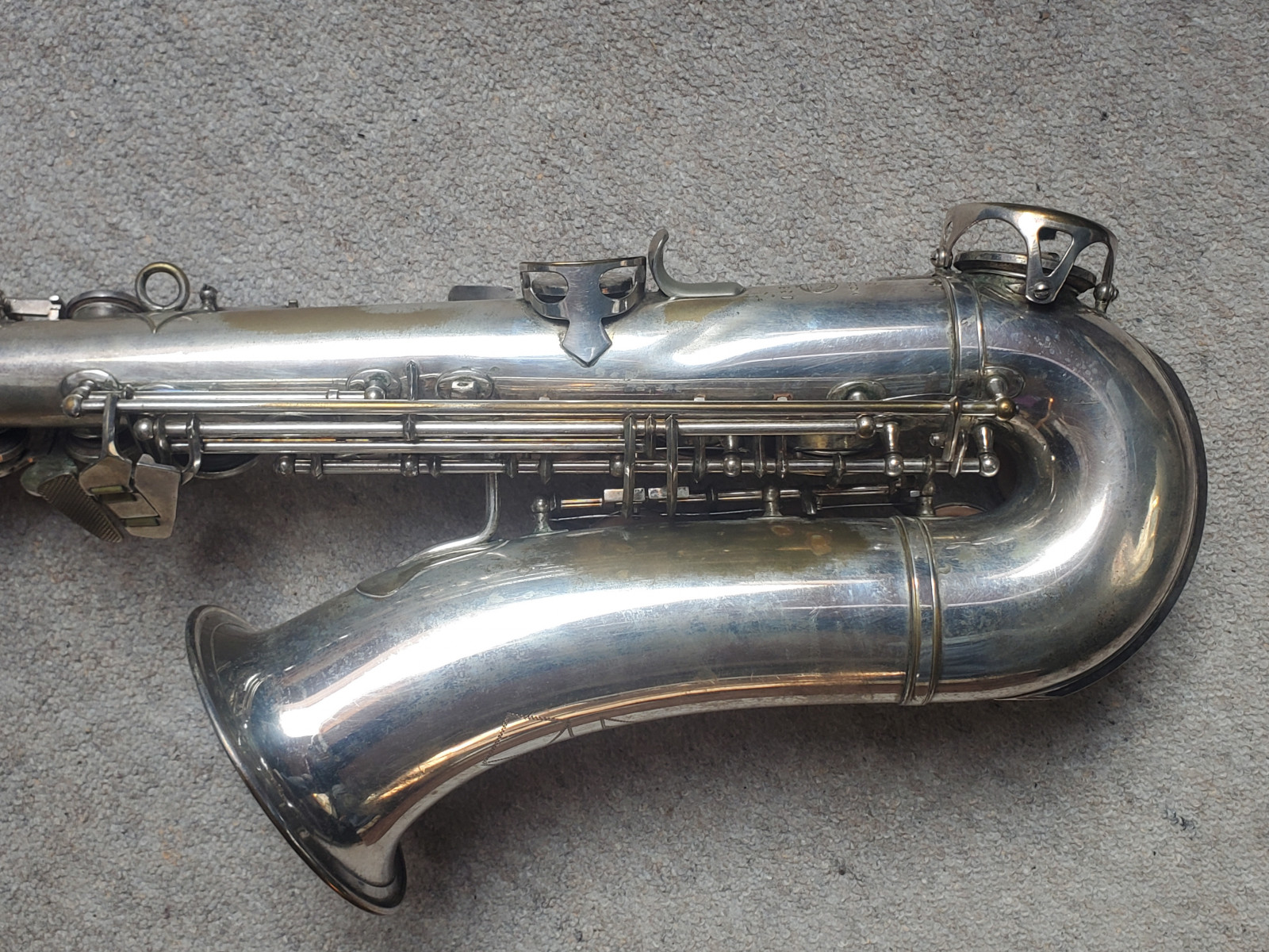 Interesting , nice and old Alto saxophone. The bell reads:" KING " The back reads: " 13858 / JKG Trade Mark / Model 3" (Julius Keilwerth Graslitz). The instrument needs some service , adjustment and cleaning. There is a small dent next to the thumb rest It comes in a used case and a noname mouthpiece. Of course it will be packed very well for the transit. Please also view my other auctions for instruments. Postage to USA or Canada is 79 USD.