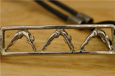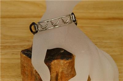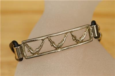 Vintage Costume Jewelry Silvertone Metal Gymnastic Event Figural 8" Bracelet. Black rubber band. Silver tone base metal. No smoke or pet odors.