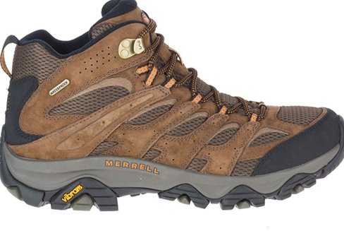 Lightweight hikers with Mother-Of-All-Boots performance built right in, Merrell Moab 3 Mid Waterproof Hiking Boots for Men give hard-charging outdoor enthusiasts all-day comfort over the most challenging trails. Supportive pig suede leather and breathable mesh uppers provide exceptional durability and stability, plus they include protective rubber toe caps for added protection from low-lying trail hazards. Breathable linings made of a 100% recycled mesh and waterproof, breathable membranes keep your feet protected, dry, and comfortable. Under the feet, these Merrell boots soften the roughest trails with lightweight, energy-returning midsoles made of a Super Rebound Compound and removable Kinetic Fit ADVANCED contoured footbeds with reinforced heel cushioning. Lightweight molded nylon arch shanks provide welcome stability over uneven terrain, while heel air cushions fight fatigue with welcome shock absorption. Vibram TC5+ outsoles give active hikers a rugged stickiness with 5mm lugs for sure footing over various surfaces, wet or dry. The Merrell Moab 3 Mid Waterproof Hiking Boots for Men are finished with bellows tongues and use 100% recycled laces and webbing. Avg. Wt. Per Pair: 2 lbs. 7 oz. Imported.