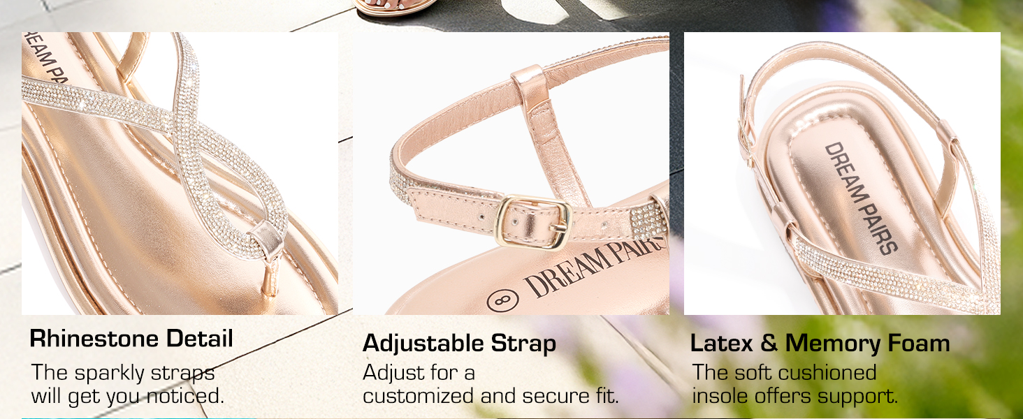 • Rhinestone Detail: The rhinestone accent on the front strap of these thong sandals adds a little sparkle to your summer outfits.