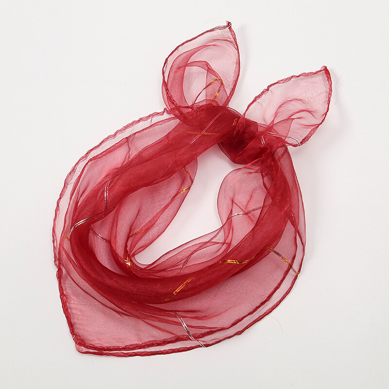 Children Kids Gold Color Stripe Small Square Scarf Solid Dance Performance Scarf