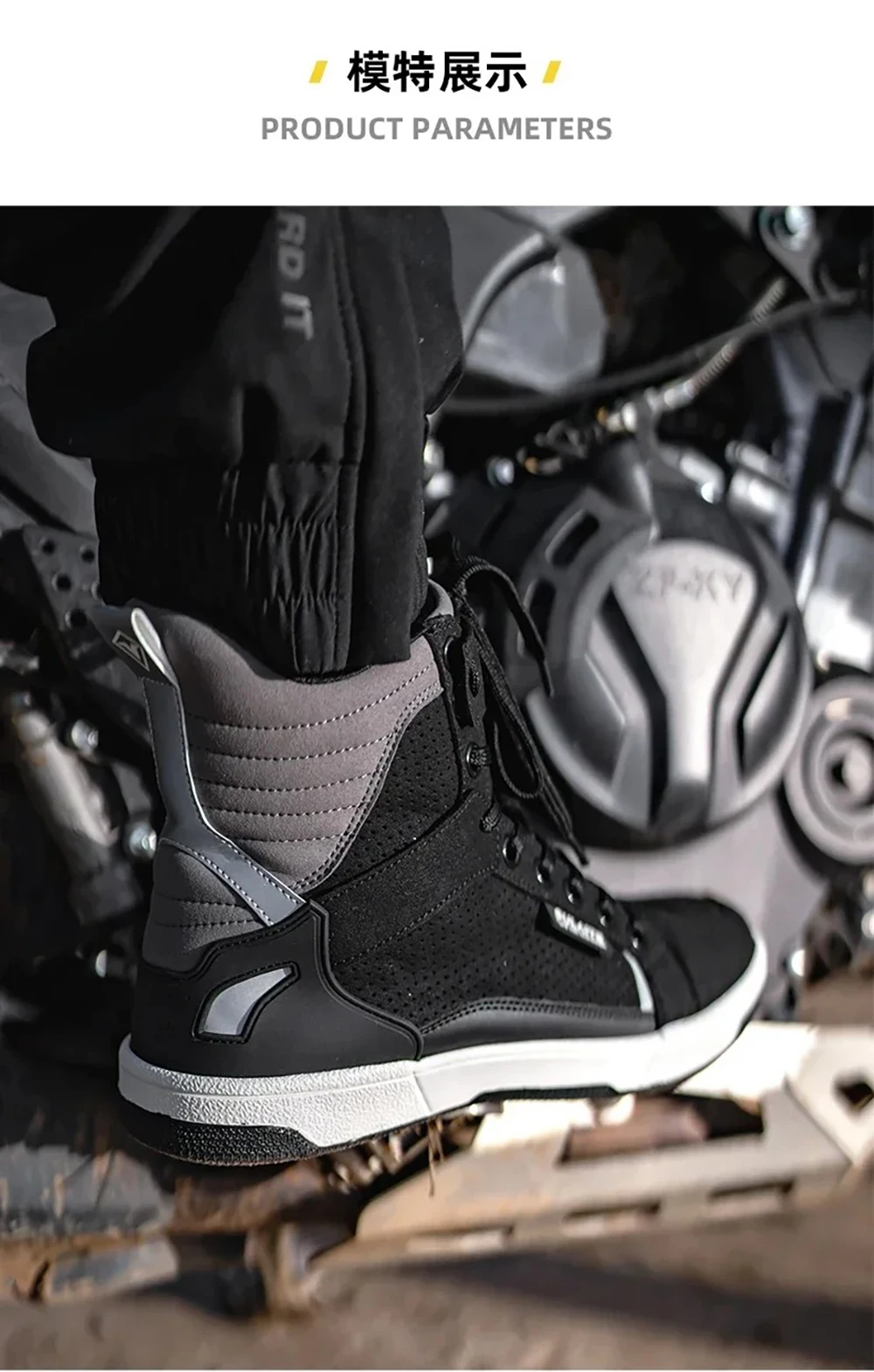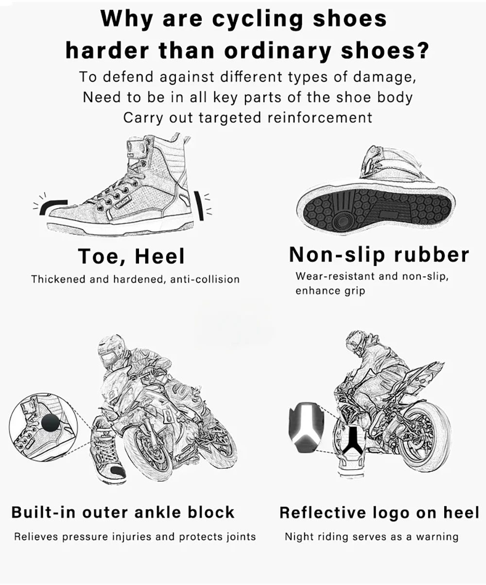 Motorcycle ShoesMotorcycle BootsBreathable Material:Crafted with breathable materials, these boots keep your feet cool during long rides.