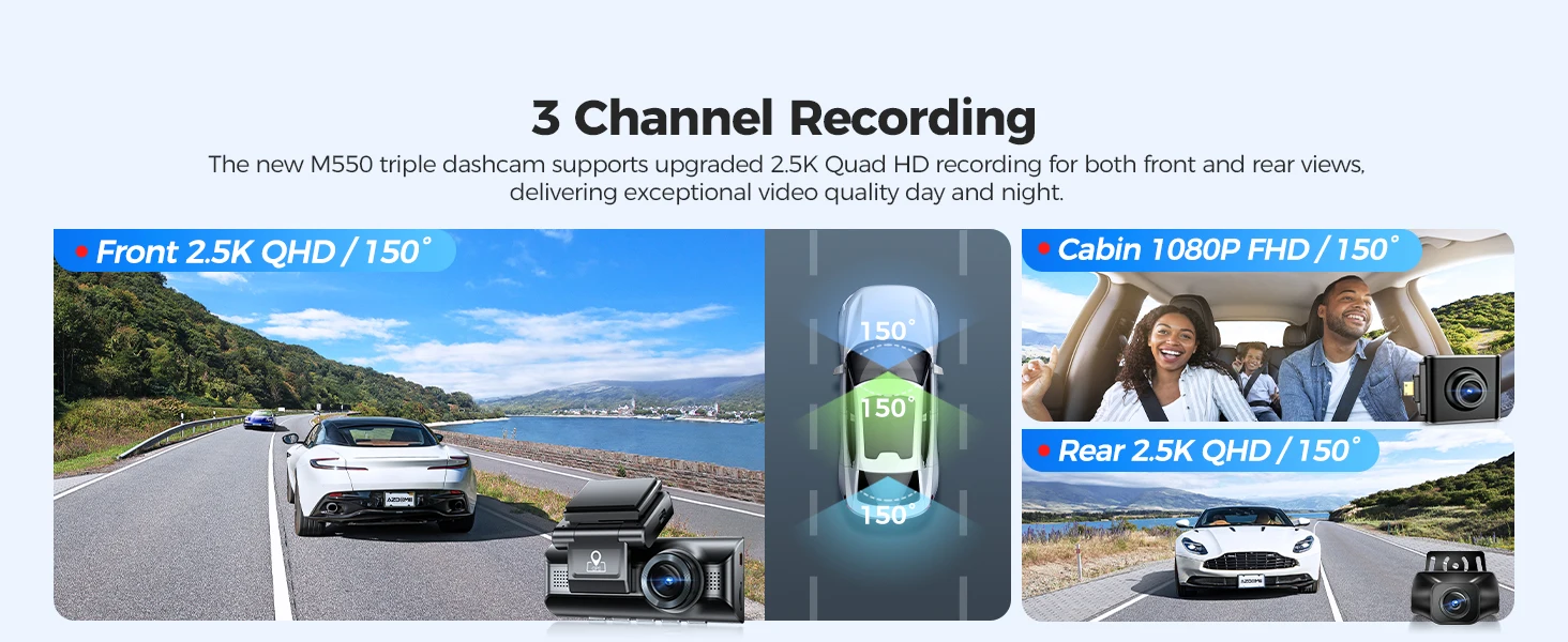 Front + Rear + Inside: 2.5K + 1080P + 2.5K