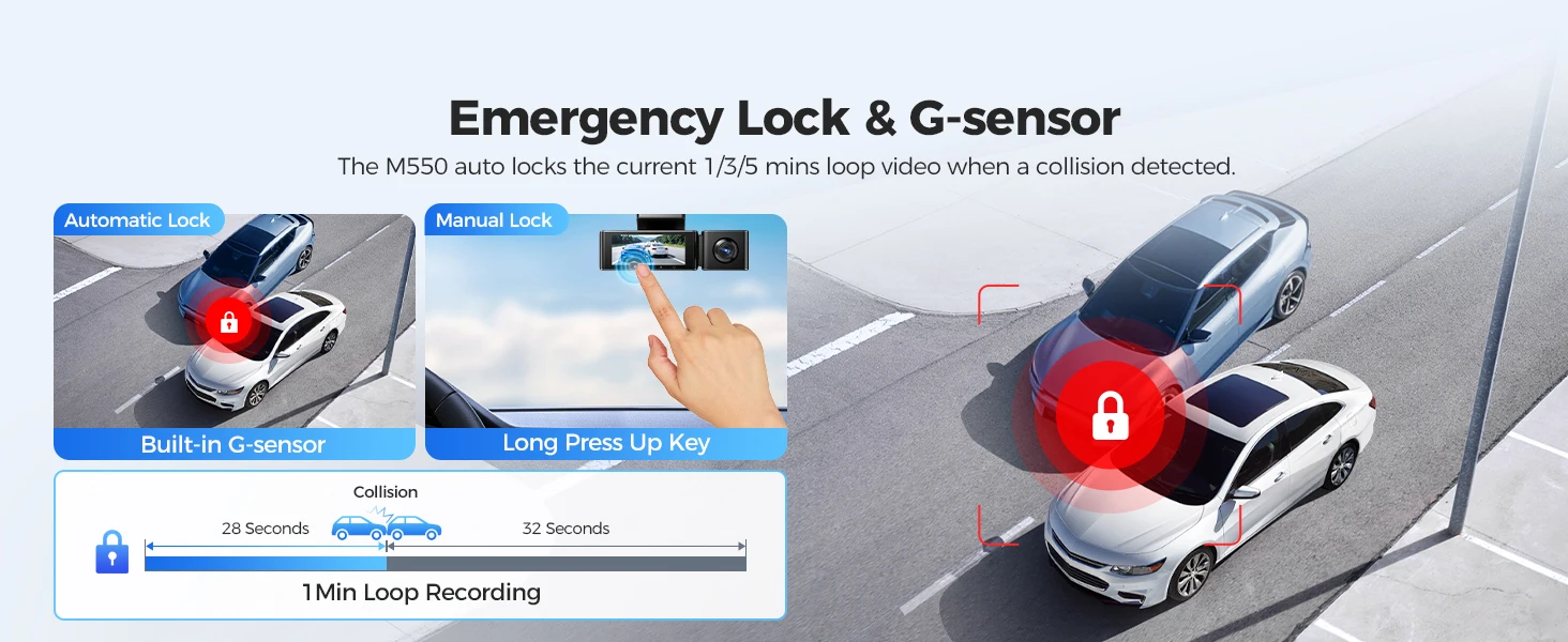 Collision Detection: Automatically locks video upon impact.