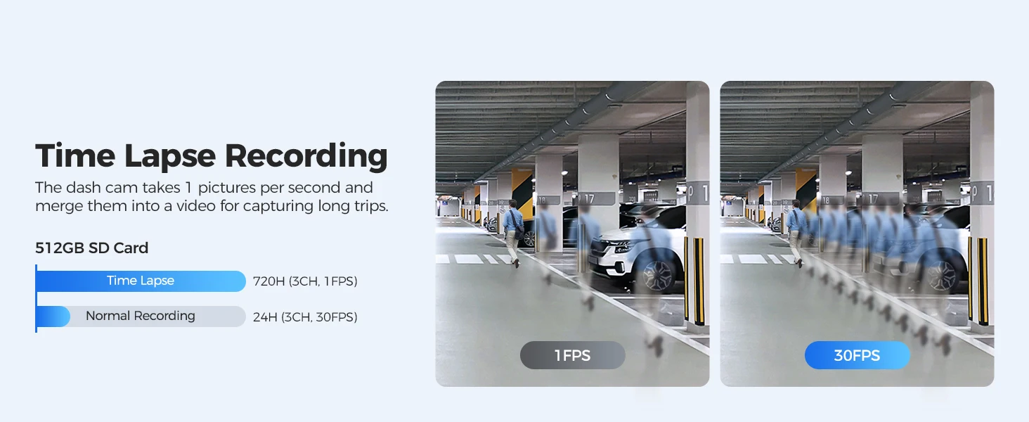 Time-Lapse Mode: Records continuously for 24 hours.