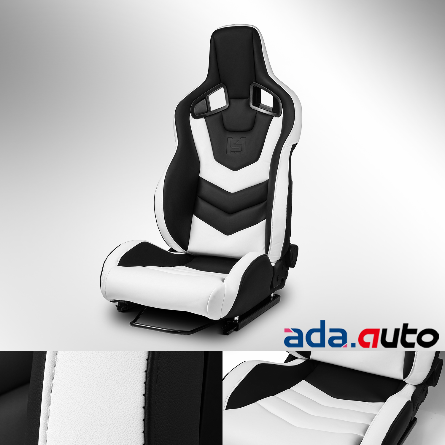 Ada - Reclinable PVC EVO-Series 1PC Racing Seats Car Seat Black-White w/Sliders