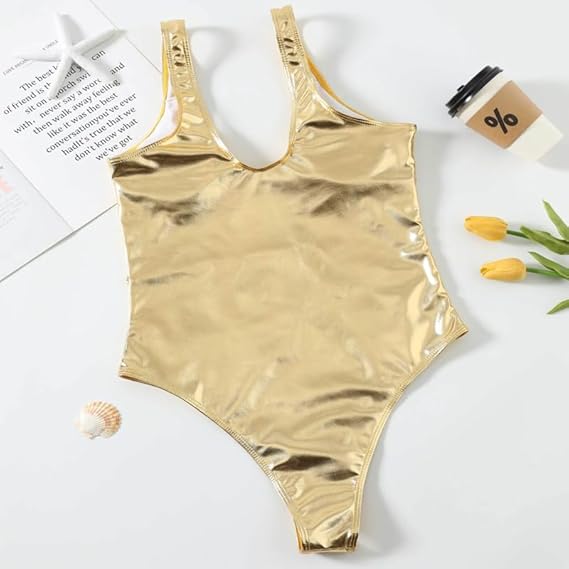 Retro Style:This liquid metallic swimsuit features a retro-inspired design with a sexy high-cut leg and a shiny finish,breathable material that shimmers and sparkles as you move.it is perfect bodysuit for eye-catching!