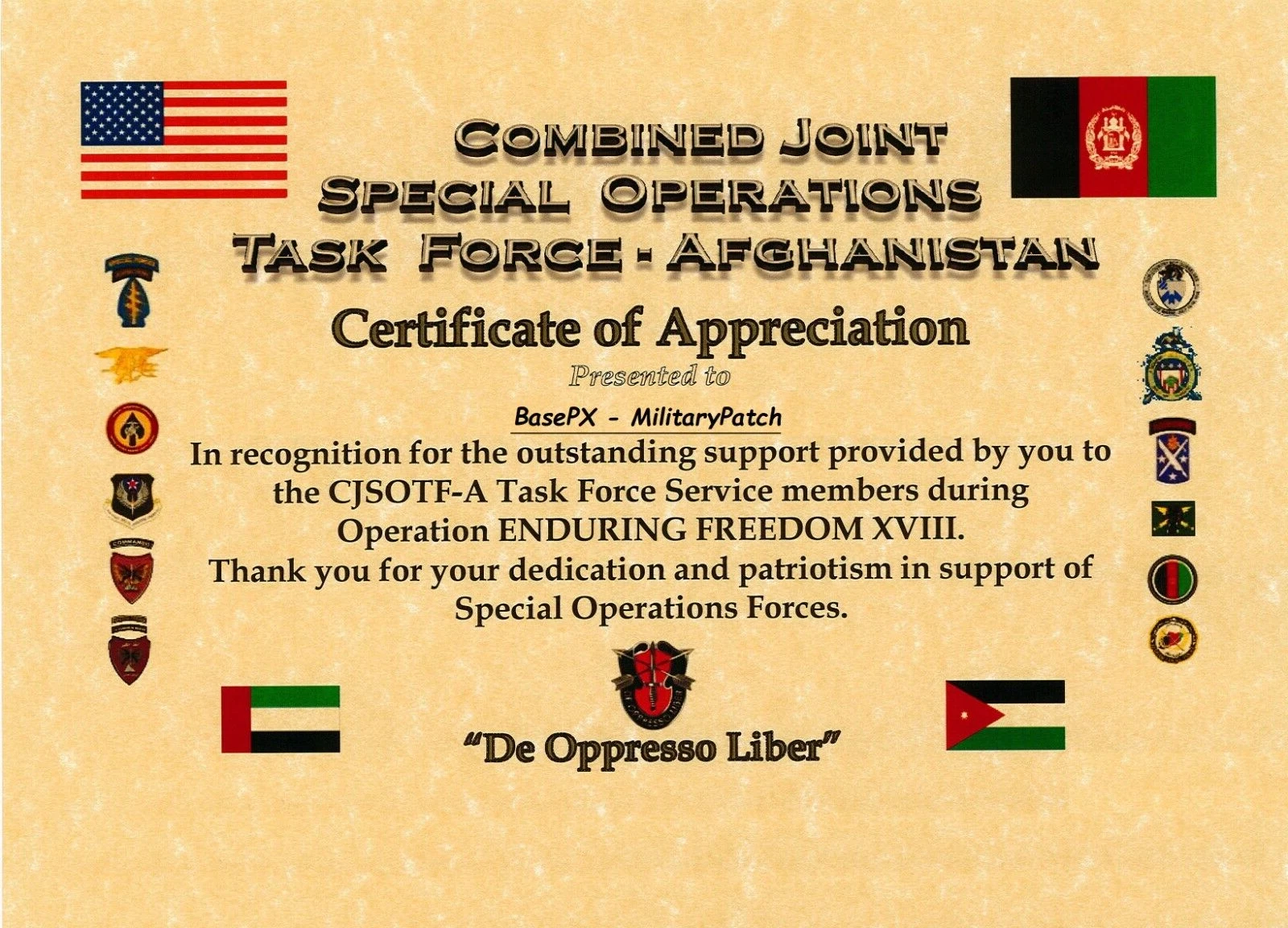 Combined Joint Special Operations Task Force - Afghanistan or CJSOTF-A is a task force unit lead by US Army Special Forces. It's headquartered at Bagram Airfield and is part of the Special Operations Joint Task Force - Afghanistan / NATO Special Operations Component Command - Afghanistan. The core tasks of CJSOTF-A include advising the Afghan National Army’s special operations forces and local police, and training forces associated with the Village Stability Operations (VSO) and counterinsurgency (COIN) - a strategy that establishes expanding security and stability in rural villages. The unit also controls highly specialized battalion-level task forces built around US Army Special Forces, Infantry, Marine Special Operators and Navy SEALs. JOINT TASK FORCES CONCEPT. The concept of Combined Joint Task Forces (CJTF) provides flexible and efficient means to enable the Alliance to generate forces at short notice, providing rapidly deployable, multi-national, multi- service task forces with appropriate command and control arrangements. The Special Operations Joint Task Force - Afghanistan (SOJTF-A) is the United States component of the NATO Special Operations Component Command - Afghanistan (NSOCC-A). The commander of NSOCC-A is also the commander of SOJTF-A - a dual-hat command arrangement. 1. This division-level headquarters is commanded by a two-star general and encompasses all in-country NATO special operations forces and assets. The SOJTF-A mission spans the entire spectrum of special operations in a counterterrorist and a counterinsurgent environment. The missions range from direct action to capacity-building to Security Force Assistance. Personnel Strength. In mid-2013 the number of personnel assigned to SOJTF-A/NSOCC-A was close to 13,000 special operators, staff, and support personnel from over 25 different nations. It is estimated that the combined NATO / U.S. military force at the start of Resolute Support in January 2015 will be about 12,000 troops; of which a fraction (25%?) will be SOF associated units. In December 2014 the CJSOTF-A was downsized and replaced by a Special Operations Task Force of battalion strength commanded by a LTC. Afghan Partner Units. The special operations forces work with a variety of Afghan units from the police and army to include the Afghan National Army Special Forces (ANASF), Afghan National Army Commandos, Special Mission Wing (SMU), Provincial Response Companies (PRCs), General Directorate Special Police Units (GDSPU), Afghan Local Police (ALP), and other lesser known highly-specialized direct action units. Uniting the "Tribes". SOJTF-A is a newly formed organization. Prior to 2012 the various U.S. and NATO SOF components were answering to different bosses. There was the Combined Joint Special Operations Component Command - Afghanistan (CFSOCC-A) that had command of most of the 'white SOF' (most under the Combined Joint Special Operations Task Force - Afghanistan or CJSOTF-A). There was ISAF SOF who worked with various elite Afghan police units like the GDPSU and the Provincial Response Companies. And then there were some other chaps that did a lot of direct action stuff at night (as in night raids). SOJTF-A Commanders. The first commander of the SOJTF-A was Major General Tony Thomas. He changed command with Major General Scott Miller in the summer of 2013 (a former CFSOCC-A commander). MG Miller was replace in the summer of 2014 with MG Ed Reeder (also a former CFSOCC-A commander). In the summer of 2015 MG Sean P. Swindell replaced Reeder. Like all good SOF units the SOJTF-A has a commander's challenge coin.