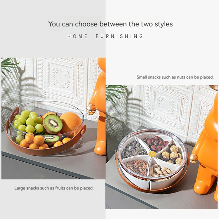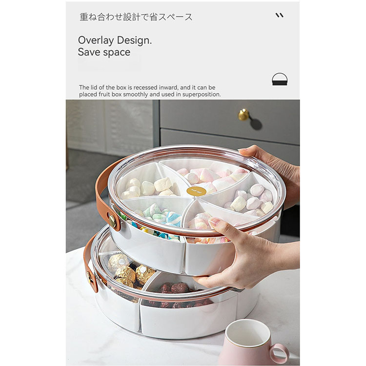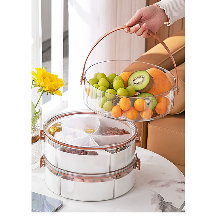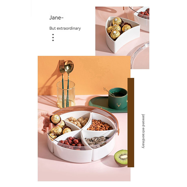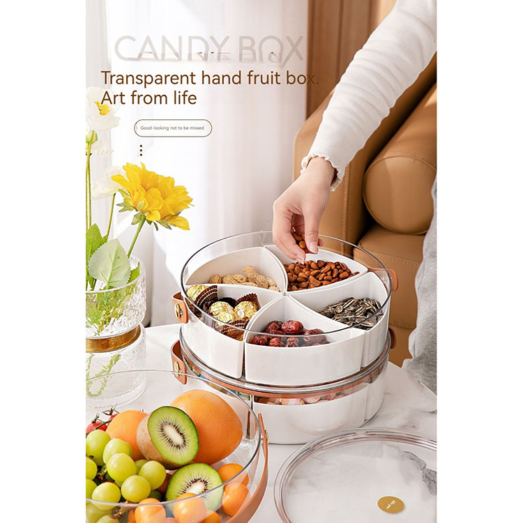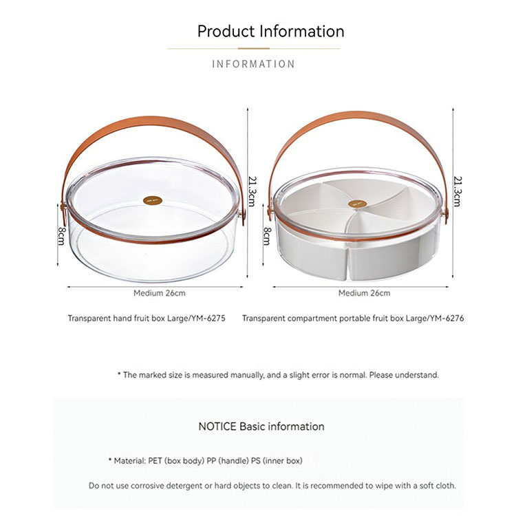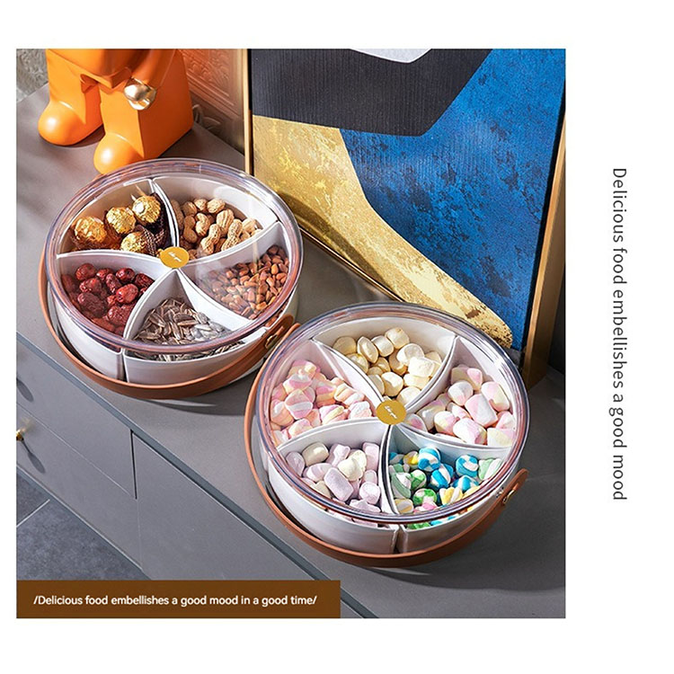 Includes 5 separate sections, removable dividers, the base can be used as a large food storage container, the tray has a handle, can be carried easily