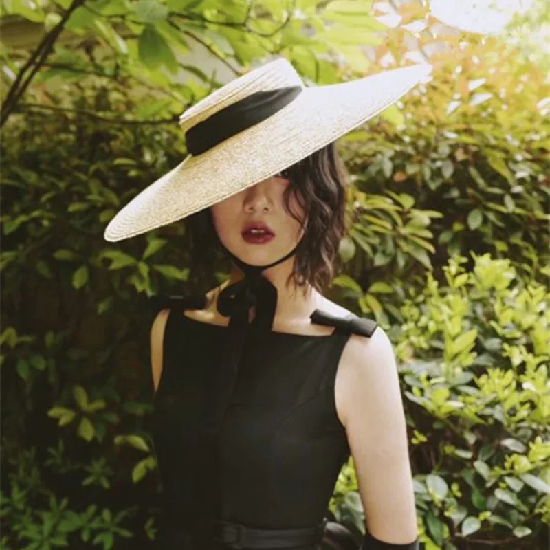 Wide Brim Boater Straw Hat 15cm