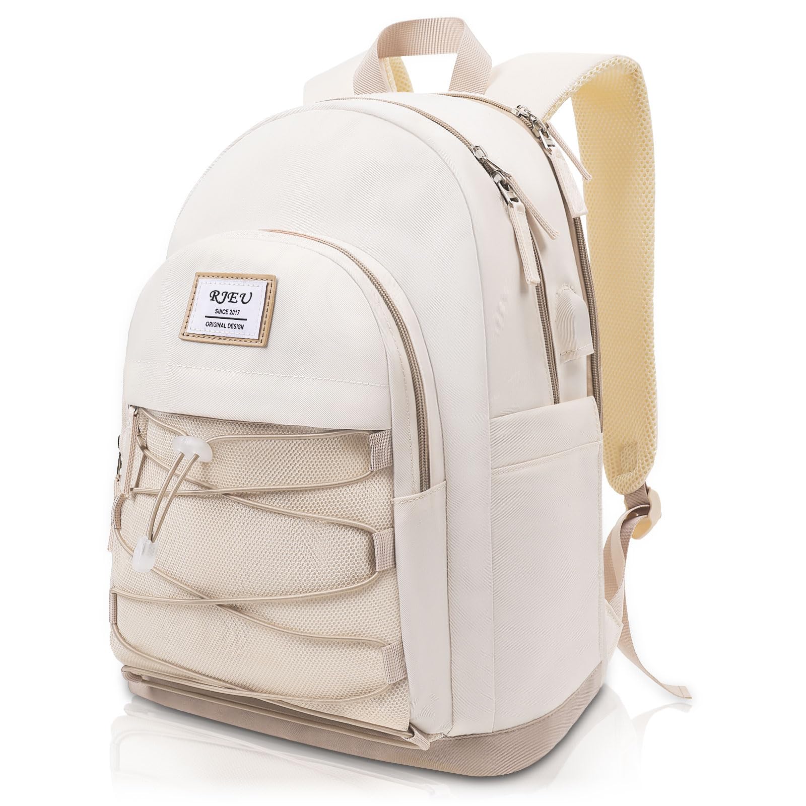 Sac à Dos Esthétique pour Adolescentes, Joli Sac D'école Avec Compartiment pour Ordinateur Portable de 15.6in pour étudiantes, Mochila para Niñas, kaki Beige