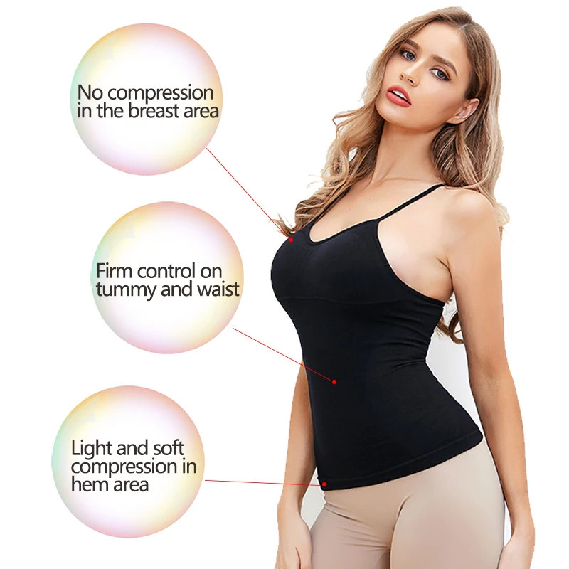 · ADJUSTABLE STRAPS -- This camisole shapewear features an adjustable strap to fit every body length and type and don't dig into your skin. It gives your chest an extra lift that you can wear it with or without a bra.