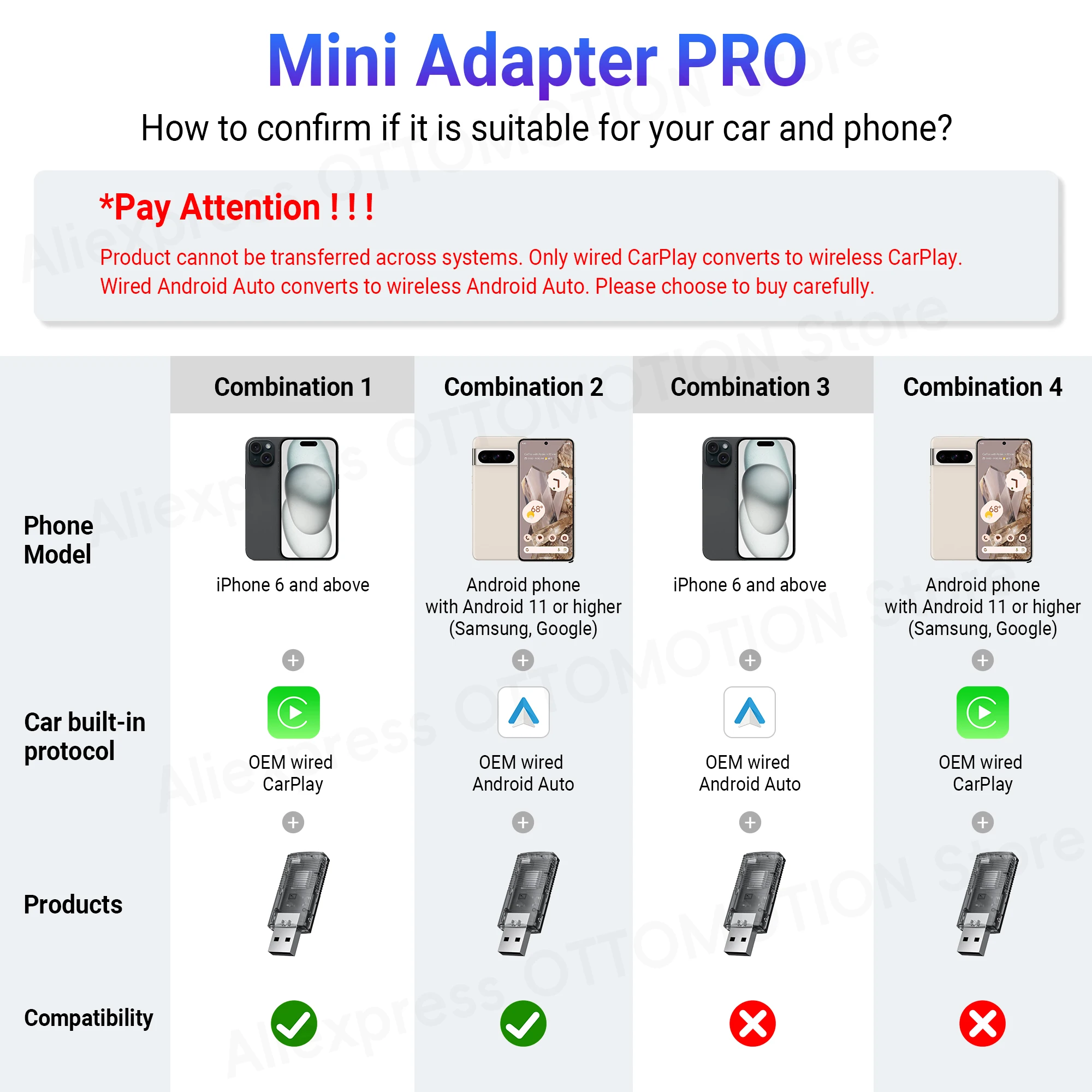 Pay Attention : Product cannot be transferred across systems. Only wired CarPlay converts to wireless CarPlay. Wired Android Auto converts to wireless Android Auto. Please choose to buy carefully.