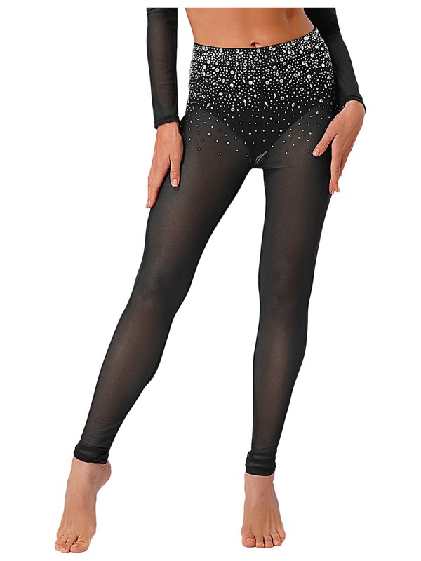 Womens Dancewear Competitions Trousers Modern Pants Mesh Rhinestone Yoga Dance