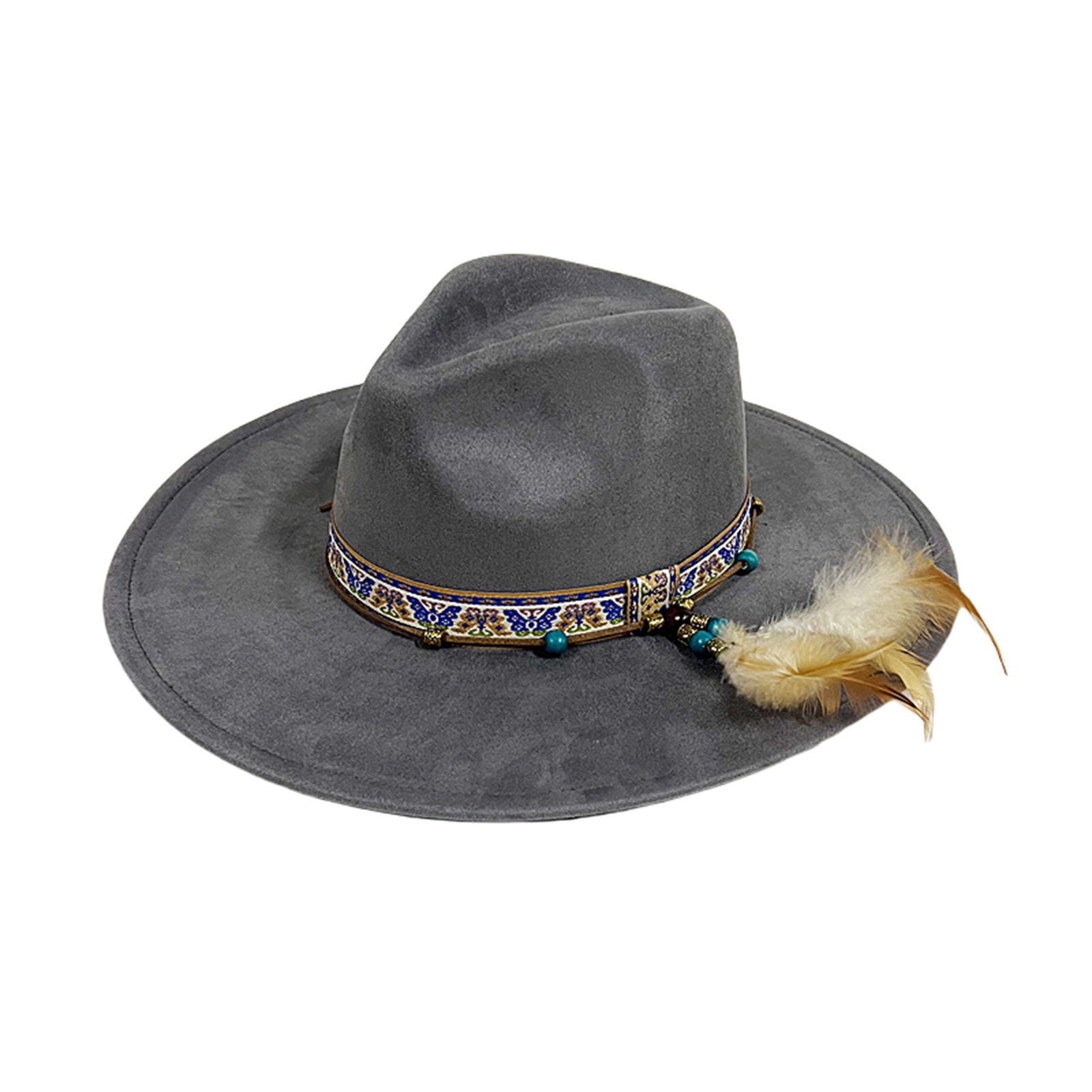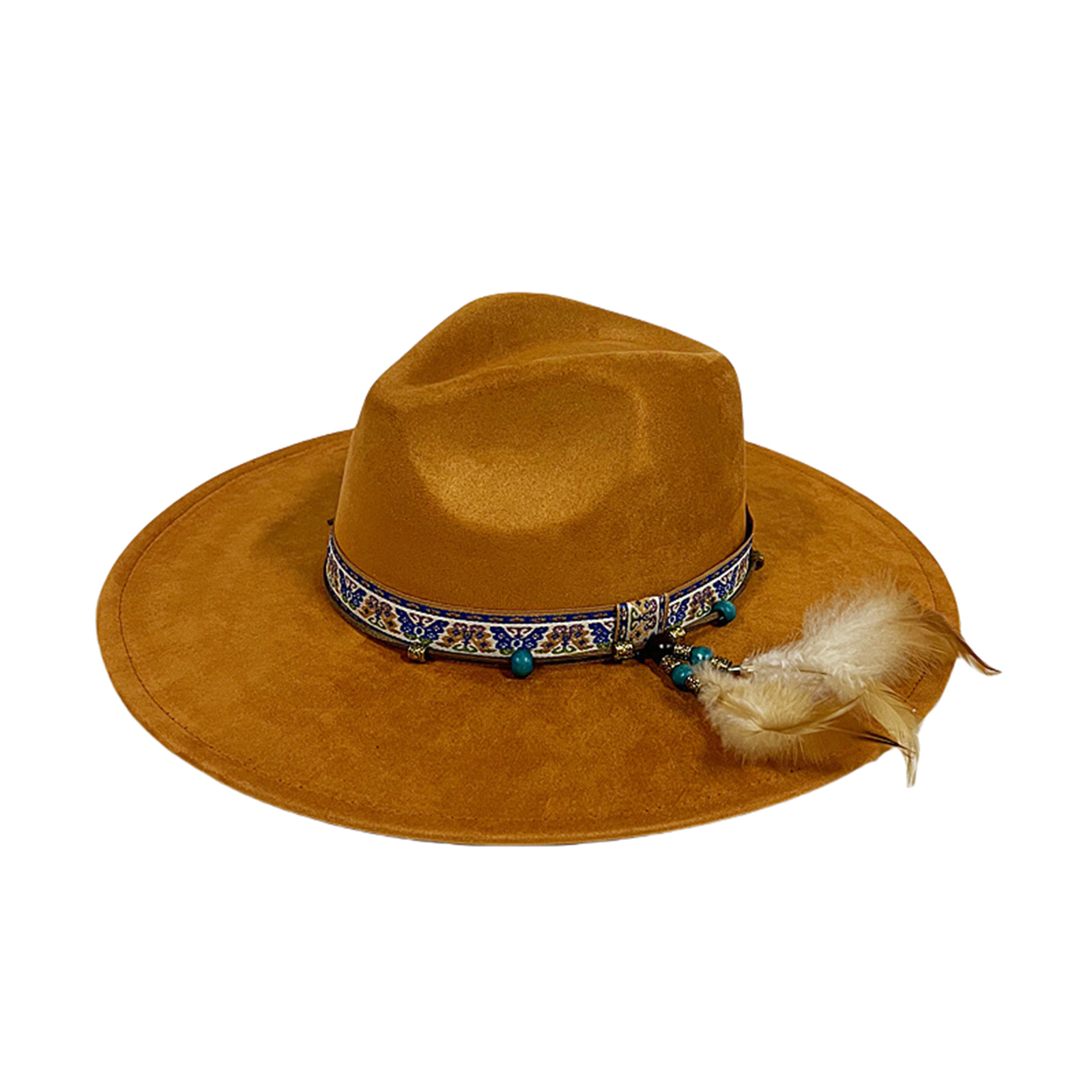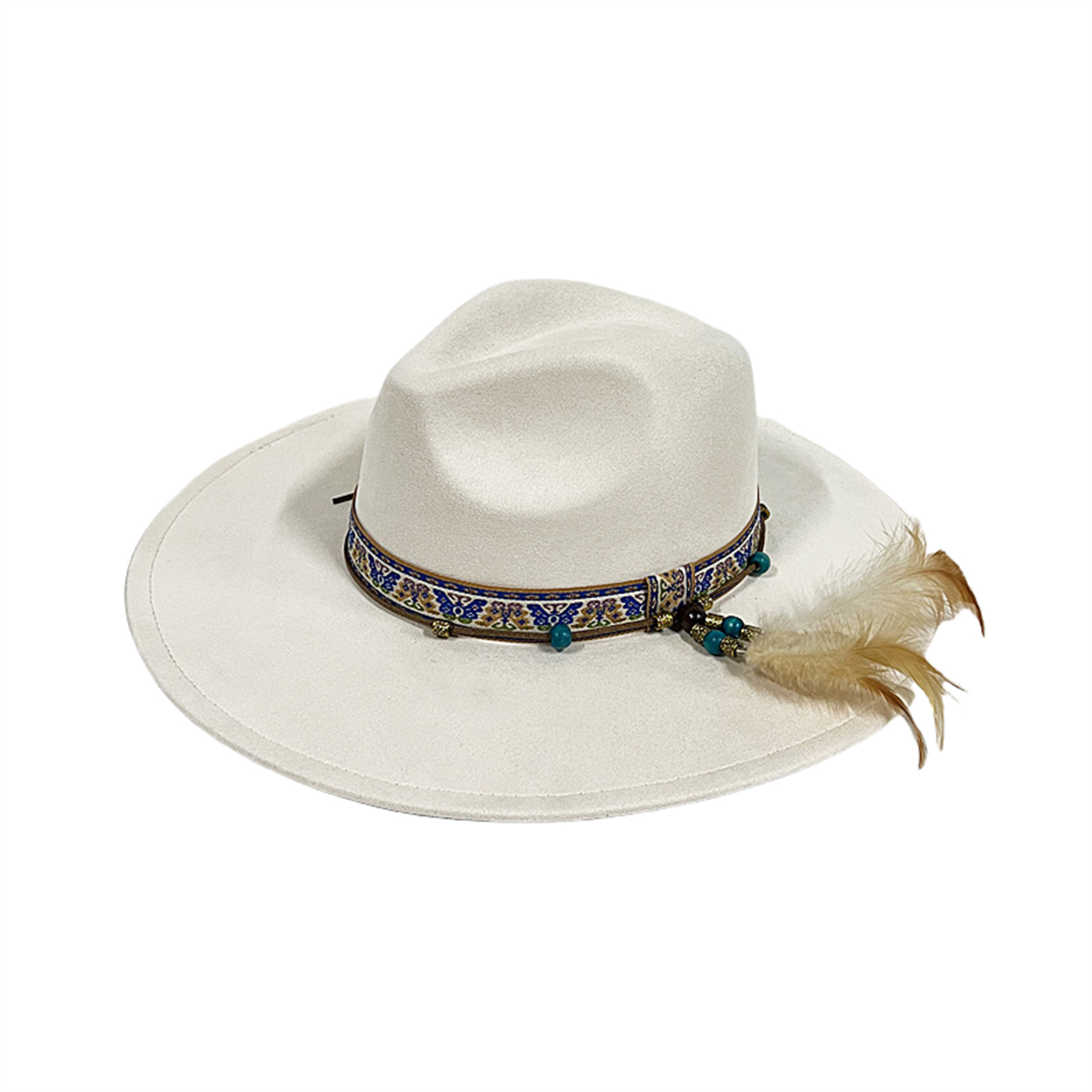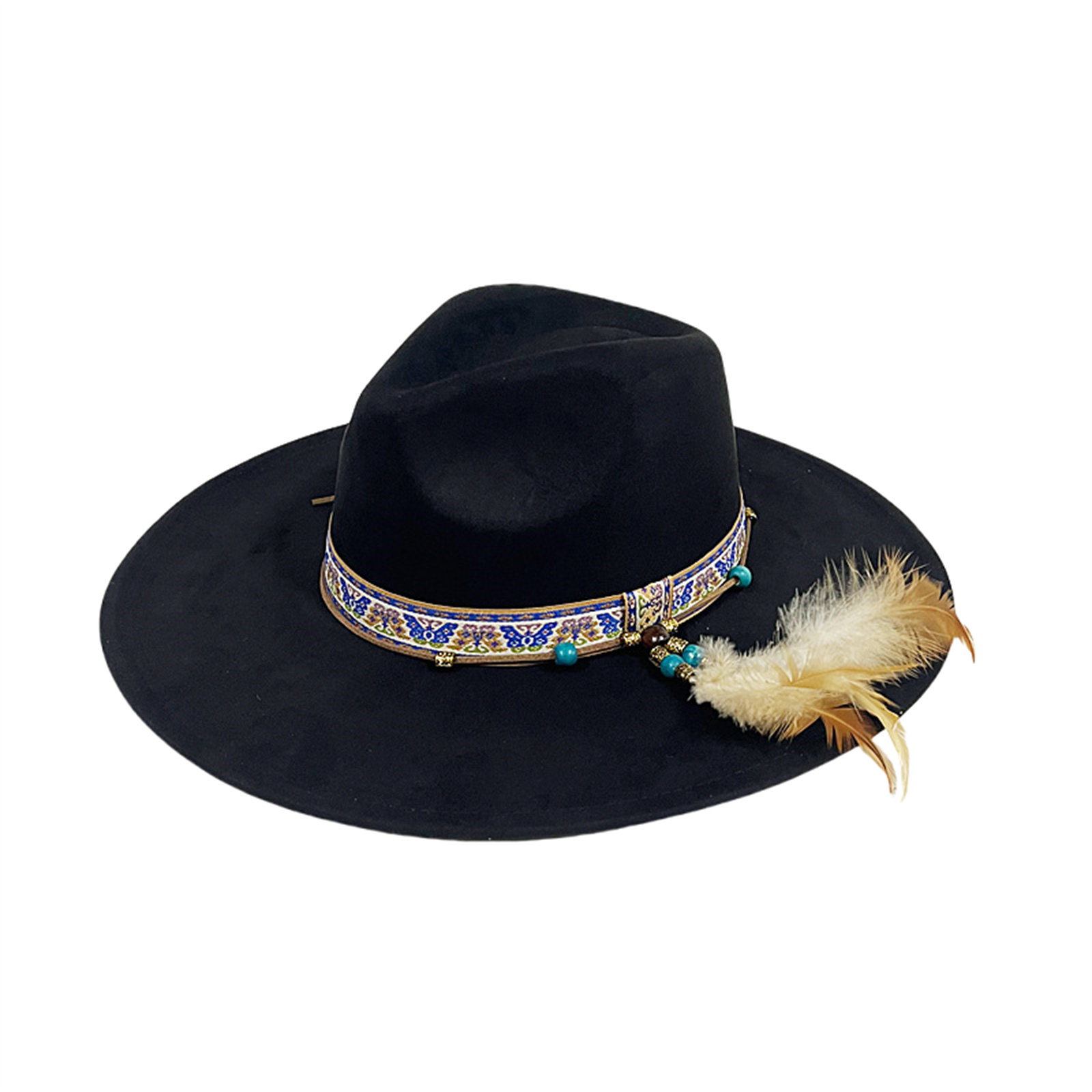 Mens Womens Ethnic Style Felt Hat Jazz Hat Classic Rancher Hats Wide Brim Hat