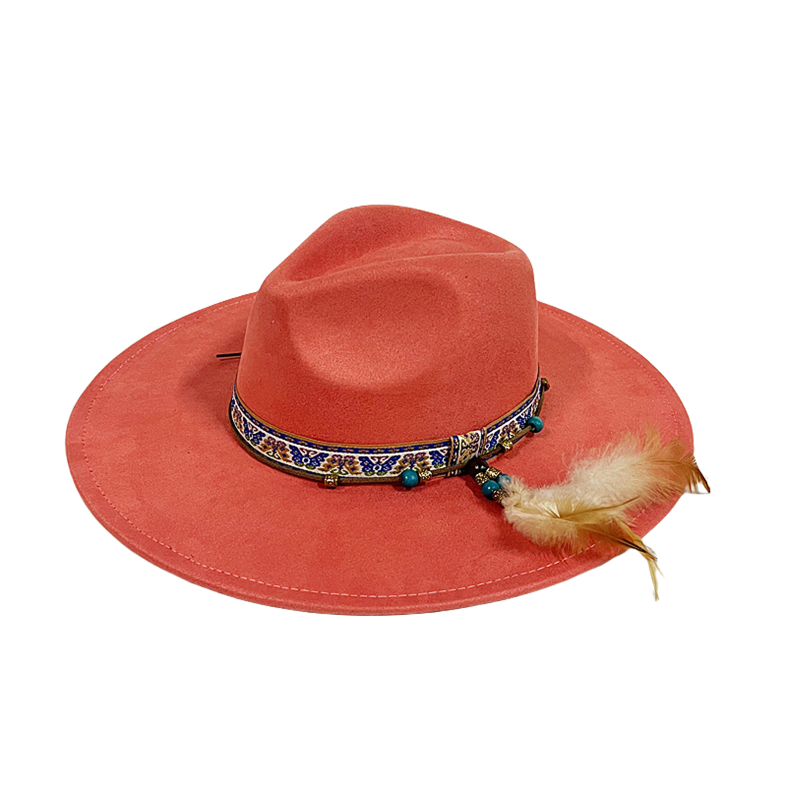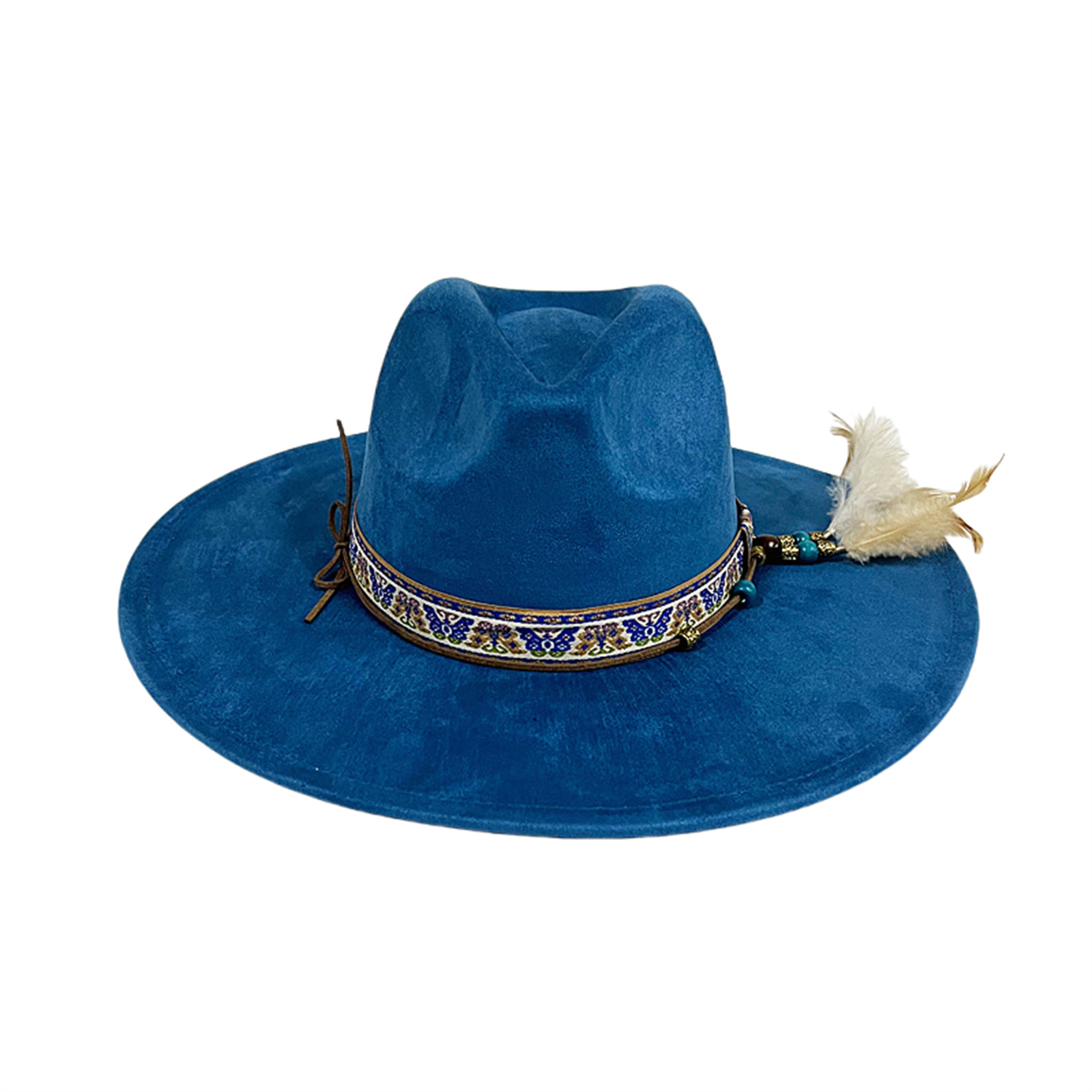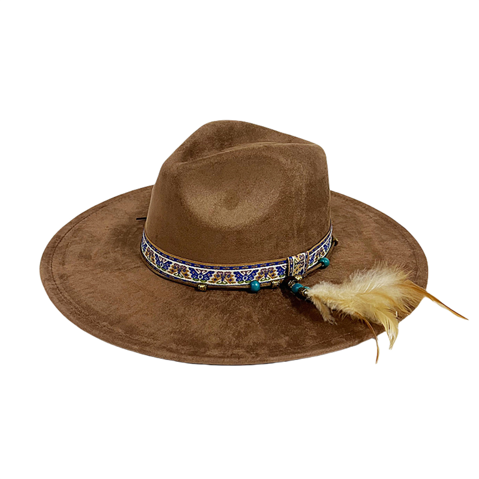 Mens Womens Ethnic Style Felt Hat Jazz Hat Classic Rancher Hats Wide Brim Hat