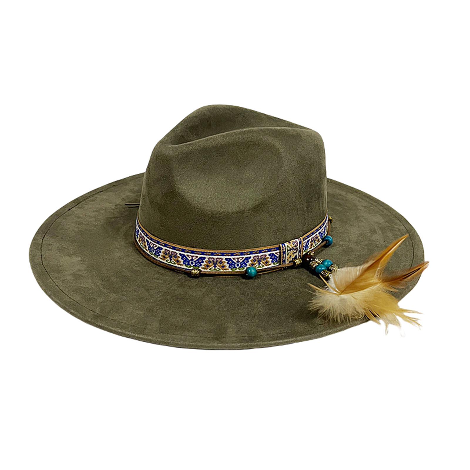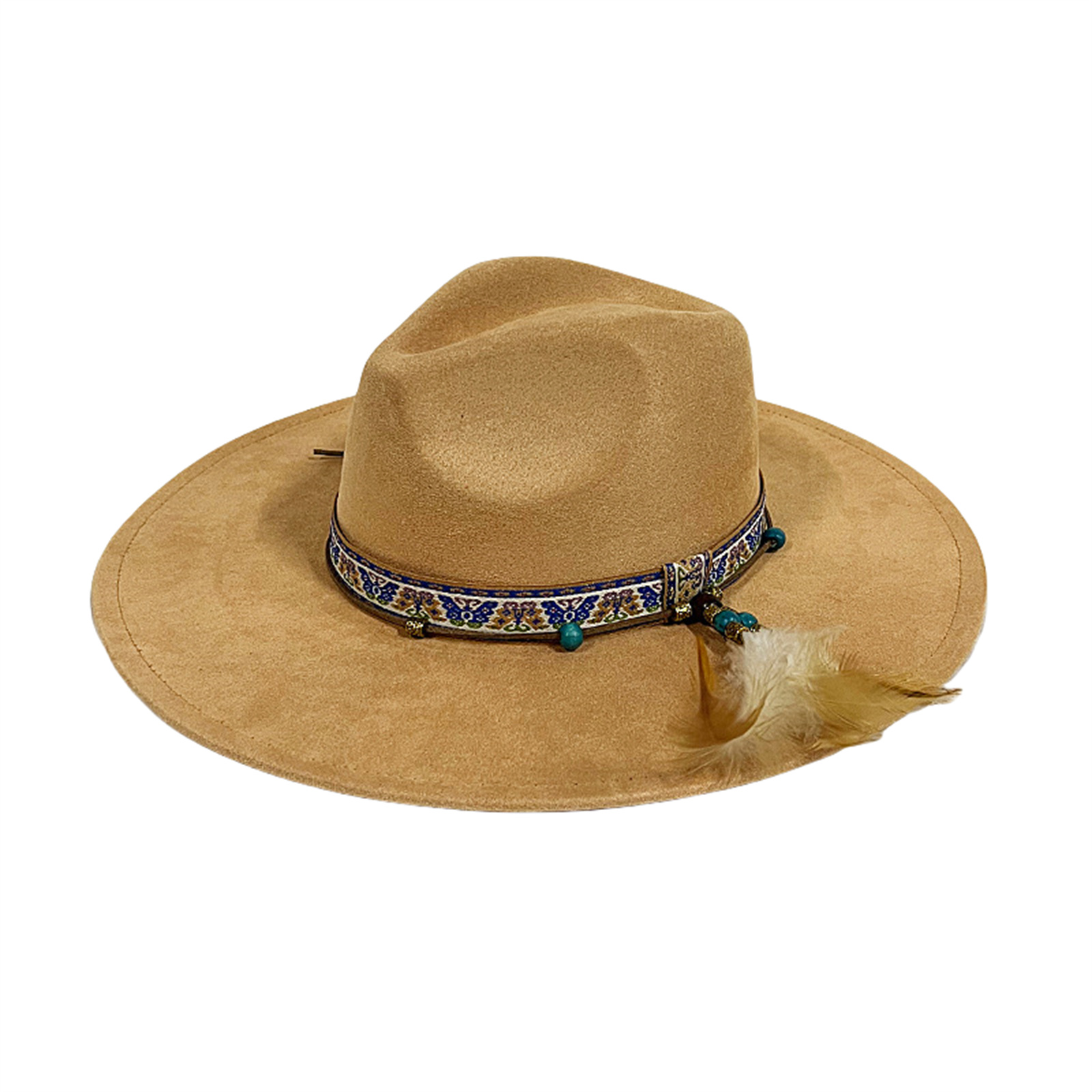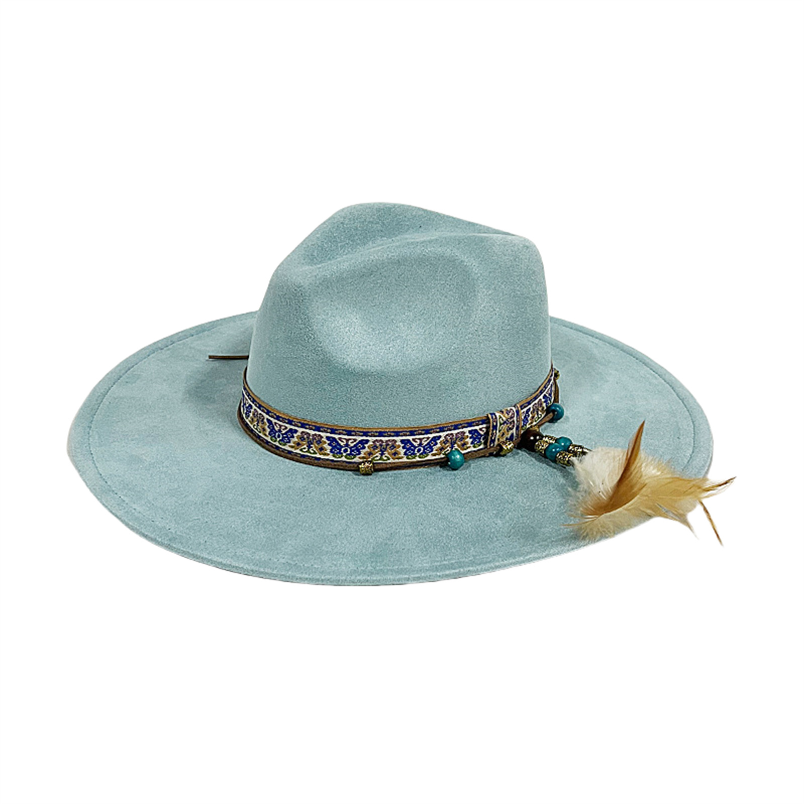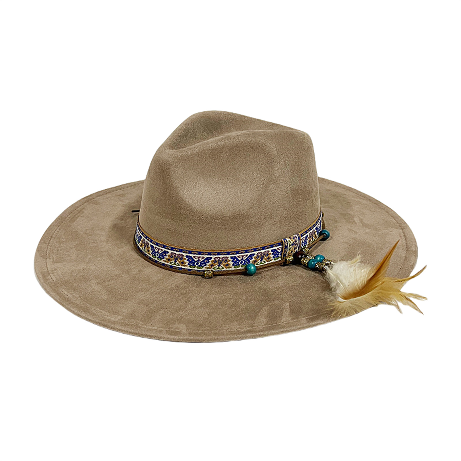 Mens Womens Ethnic Style Felt Hat Jazz Hat Classic Rancher Hats Wide Brim Hat