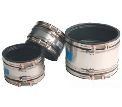 The MISSION RUBBER CO INC MR5644 is a Flex-Seal sewer coupling designed for connecting cast iron or plastic pipes. This coupling effectively connects both types of materials in a tight-fitting manner.