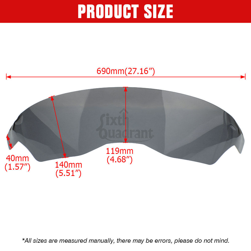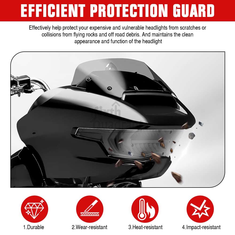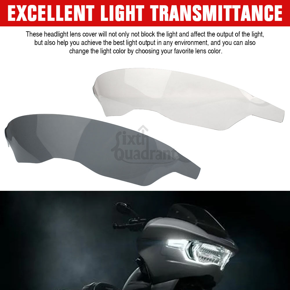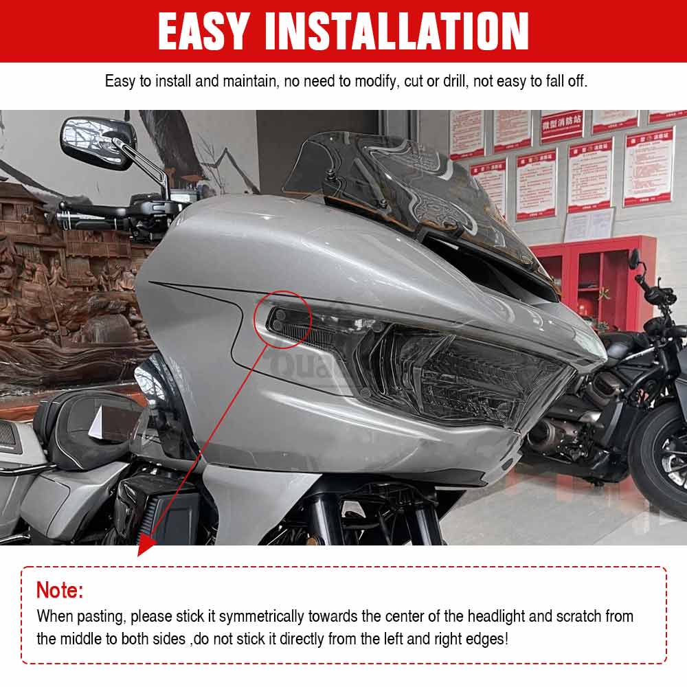 Specification: Condition:Brand new Type: Motorcycle Headlight Screen Protective Cover Material: High Quality ABS Plastic Color: Dark smoke Installation location: Motorcycle Front Headlight Feature: 【Sophisticated Material】Headlight Protector made of High Quality ABS Plastic materials, strong, durable, wear resistant, not easy to turn yellow, not easy to age, strong heat resistance, and not afraid of wind and rain,and have a long service life. 【Efficient Protection Guard】 The headlight protector cover can effectively protect your light from scratches, stains ,stones, debris ,sand and other damage. Effectively help protect your expensive and vulnerable headlights from scratches or collisions from flying rocks and off road debris. And maintains the clean appearance and function of the headlight 【Excellent Light Transmittance】These headlight lens cover will not only not block the light and affect the output of the light, but also help you achieve the best light output in any environment. Even if it is installed, the motorcycle headlight protection cover will not affect the normal use of motorcycle headlights. 【With a simple and modern design】Make your motorcycle look Cool style design,adds an extra layer of style to your bike. This cover ensures a tight fit with the headlight, enhancing the beauty of the motorcycle while protecting the headlight wellupgrade the motmorcycle appearanceto make your motorcycle more attractive. And the protector is easy to remove and replace, convenient to clean the mud of the clear lens cover. 【Easy installation】Comes with double-sided self-adhesive tape (cut and use according to your needs), which is more conducive to adhesive installation. Light weight, no complicated steps can be installed, bringing you more convenience. Easy to install and maintain, no need to modify, cut or drill, not easy to fall off. Note: When pasting, please stick it symmetrically towards the center of the headlight and scratch from the middle to both sides ,do not stick it directly from the left and right edges! Fitment: It is aftermarket parts used For Harley-Davidson Road Glide 2023-later FLTRXSE and 2024 FLTRX and FLTRXSTSE and 2025 ROAD GLIDE RR FLTRXRRSE models: Fit for Harley Touring Road Glide CVO/SE FLTRXSE 2023 2024-later Fit for Harley Touring Road Glide FLTRX 2024 -later Fit for Harley Touring Road Glide CVO ST FLTRXSTSE 2024 -later Fit for Harley Touring CVO ROAD GLIDE RR FLTRXRRSE 2025-later Package Included:1 pc Headlight Guard Screen Protector Cover (As picture shown)