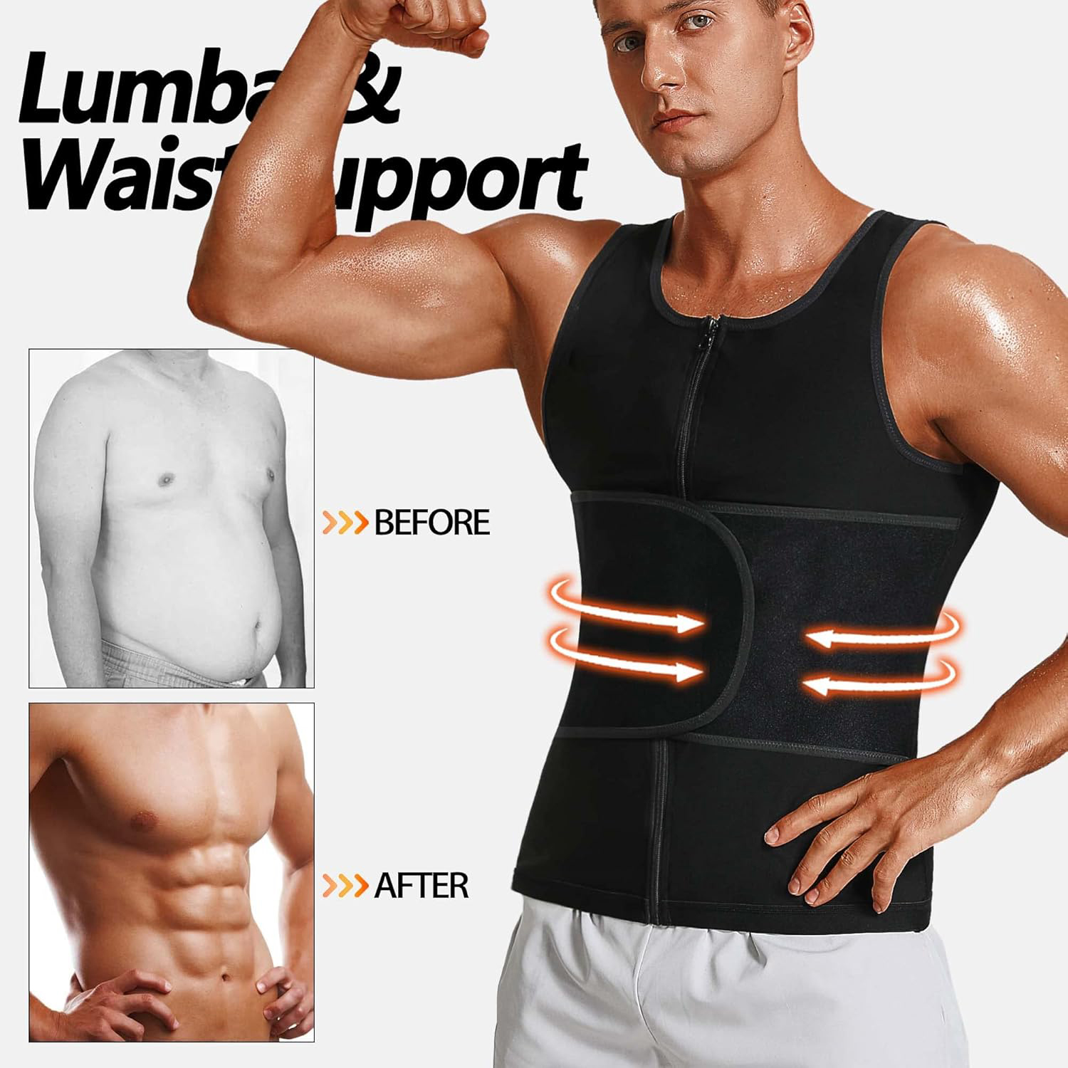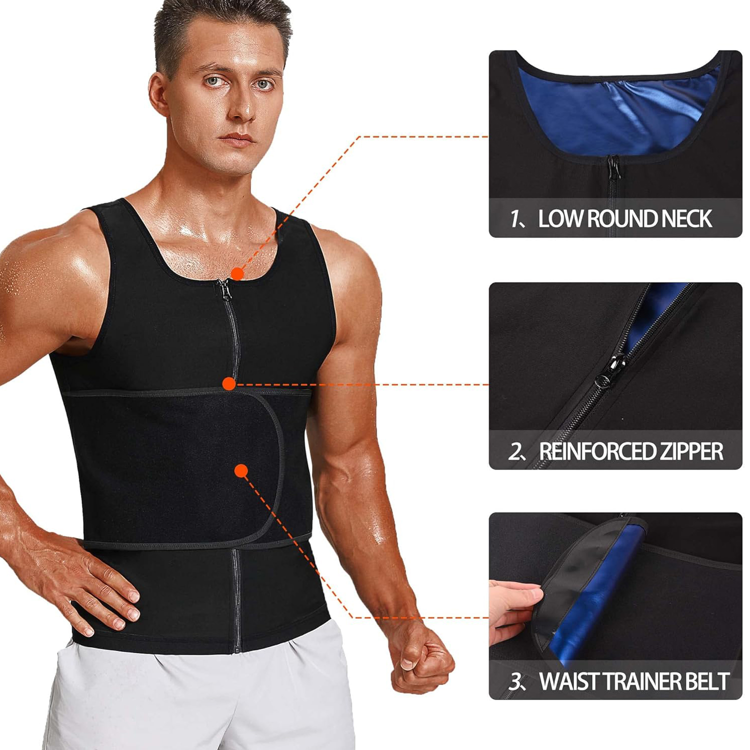 ZIPPER,WAIST BELT DESIGN: Compared to regular sauna vests, our sauna vests have two adjustable waistbands at the waist, which not only help you sculpt the perfect line of the waist, but also prevent damage to the waist during intense exercise. The thoughtful design is trustworthy!