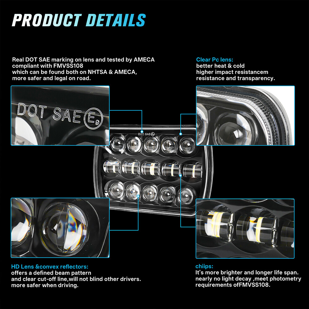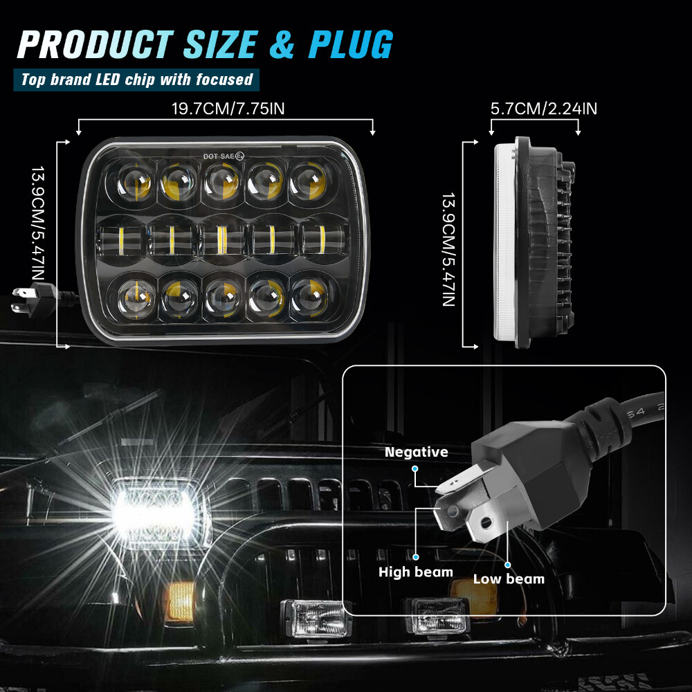 Aaiwa Brightest 7X6'' 5X7" Rectangle LED Headlights DOT Hi/Low Sealed Beam Headlamps