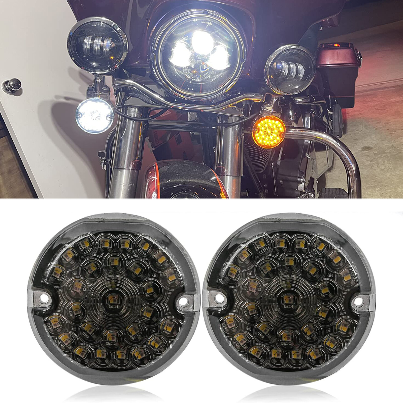 Fit for Harley 3-1/4 Inch flat style led turn signal with 1157 double contacts bulbs only.