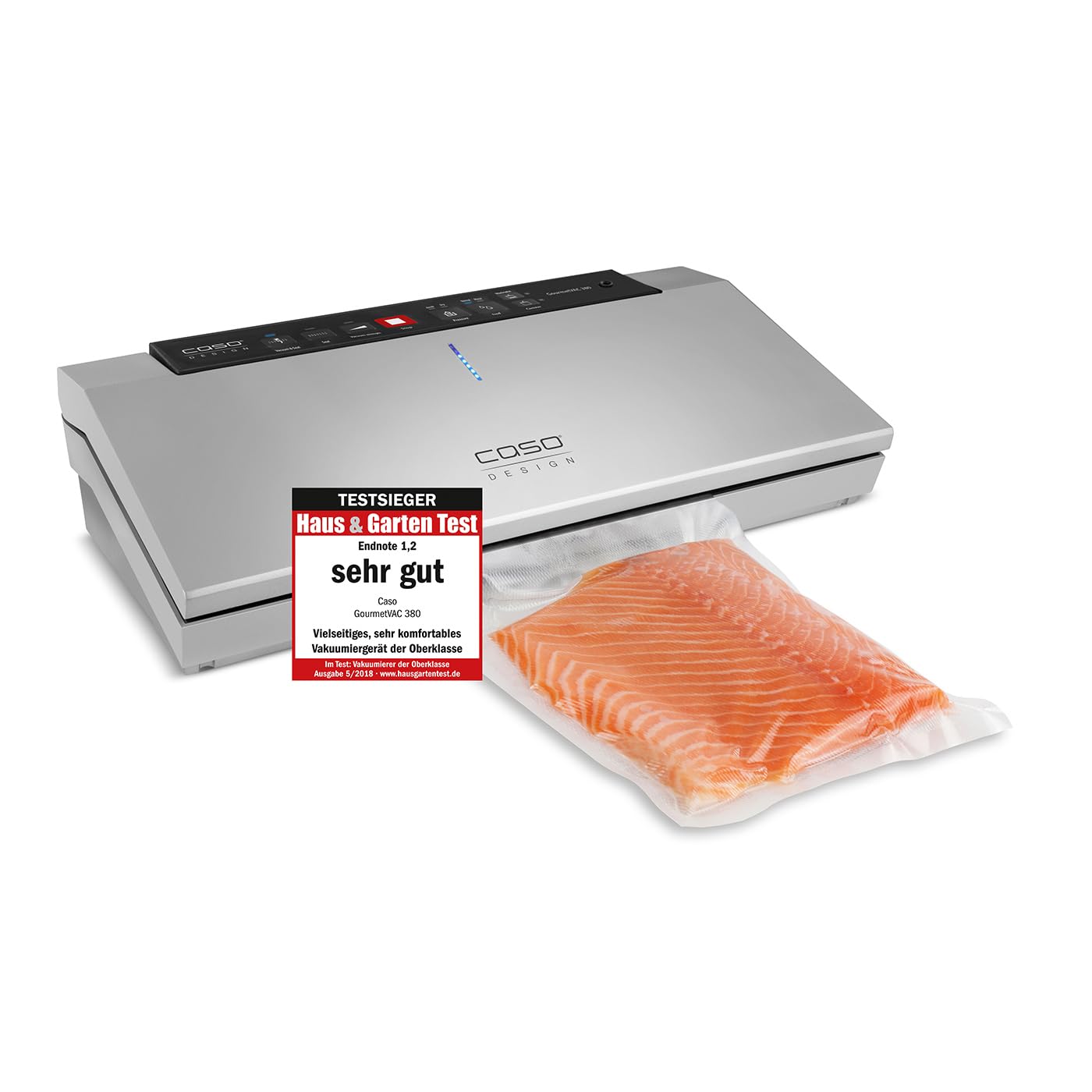 GourmetVAC 380 - Vakuumierer - Vakuumiergerät, Testsieger Haus & Garten Test , doppelte Schweißnaht, Kolbenpumpe (15L/min), regulierbare Vakuumstärke & Schweißzeit, inkl. 10 Beutel 20x30 cm