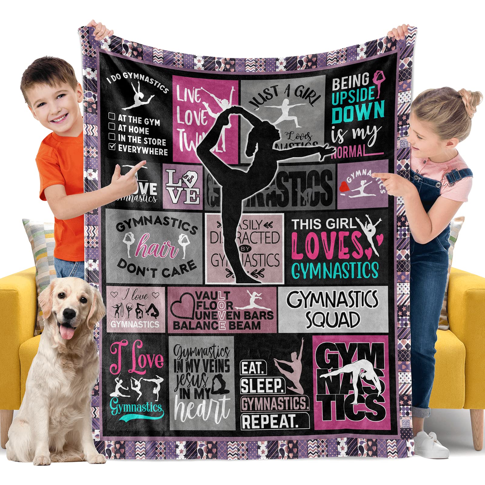 - ✨ EXQUISITE AND CREATIVE DECORATIONS - This throw blanket with gymnastics design is very unique and creative. It is not only a warm and cozy blanket, but it can also be used as a unique decoration in a variety of settings, such as the living room, bedroom, meeting room, children's room, themed room, and party.