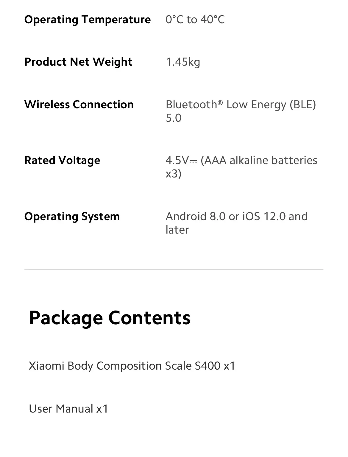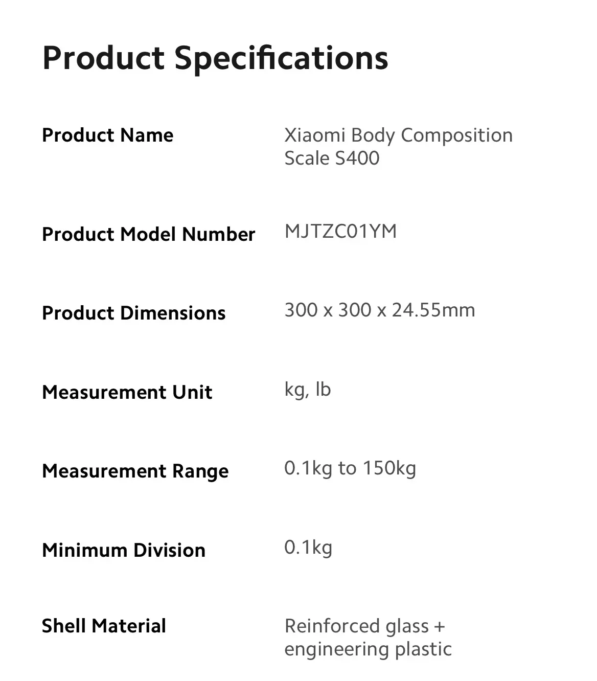 Product Name: Mi Body Fat Scale S400
