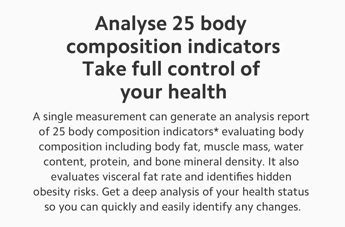 5. Receive comprehensive insights into your health with a detailed analysis of 25 body composition indicators.