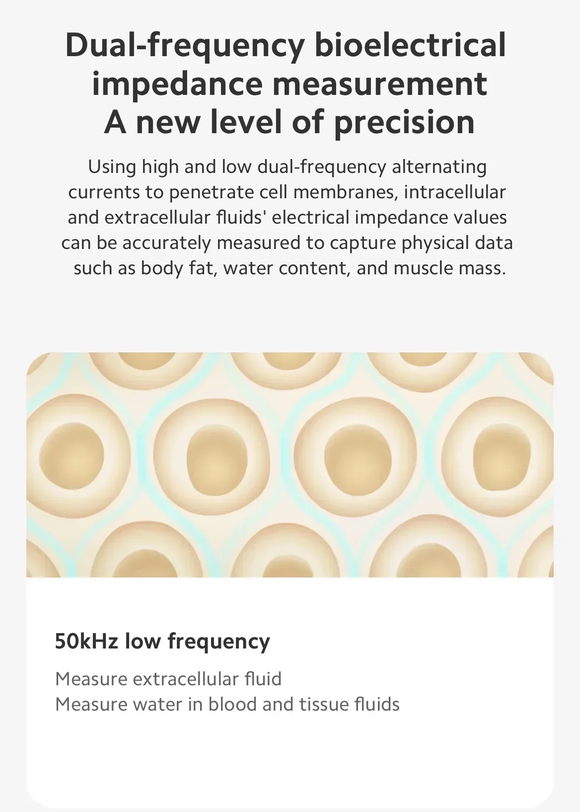 2. Dual-frequency bioelectrical impedance measurement takes precision to a new level.