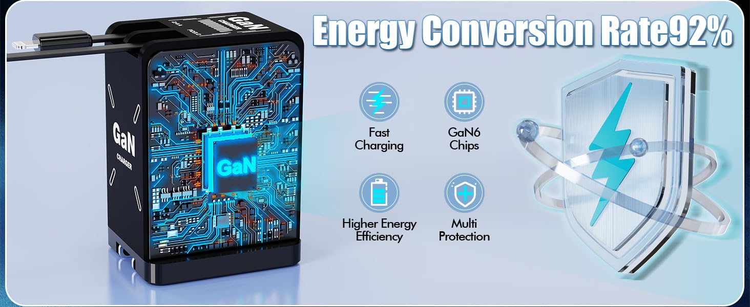 【ft2-in-1 GaN Charger with Retractable Cables】: Combines a retractable Type-C cable and an additional Type-L port — charge two devices at once without carrying extra cords