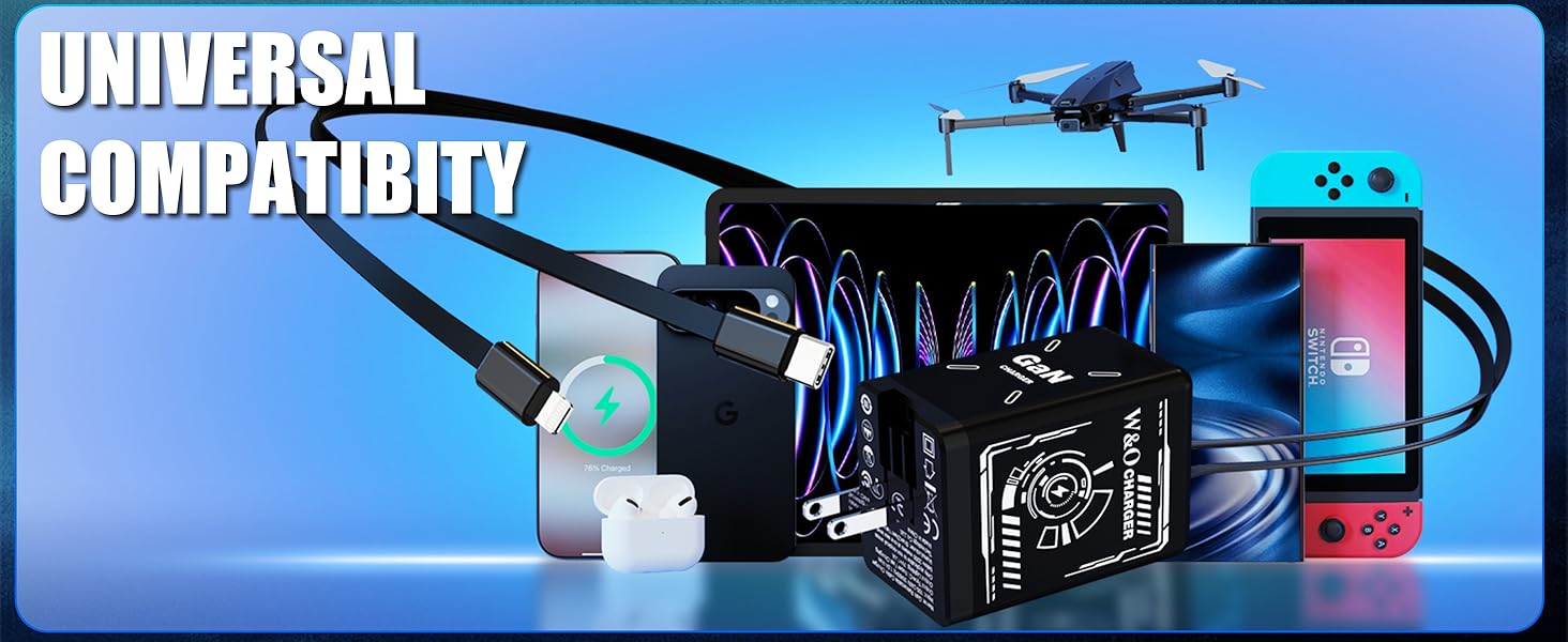 【Space-Saving All-in-One Solution】: replaces multiple chargers,easy to carry