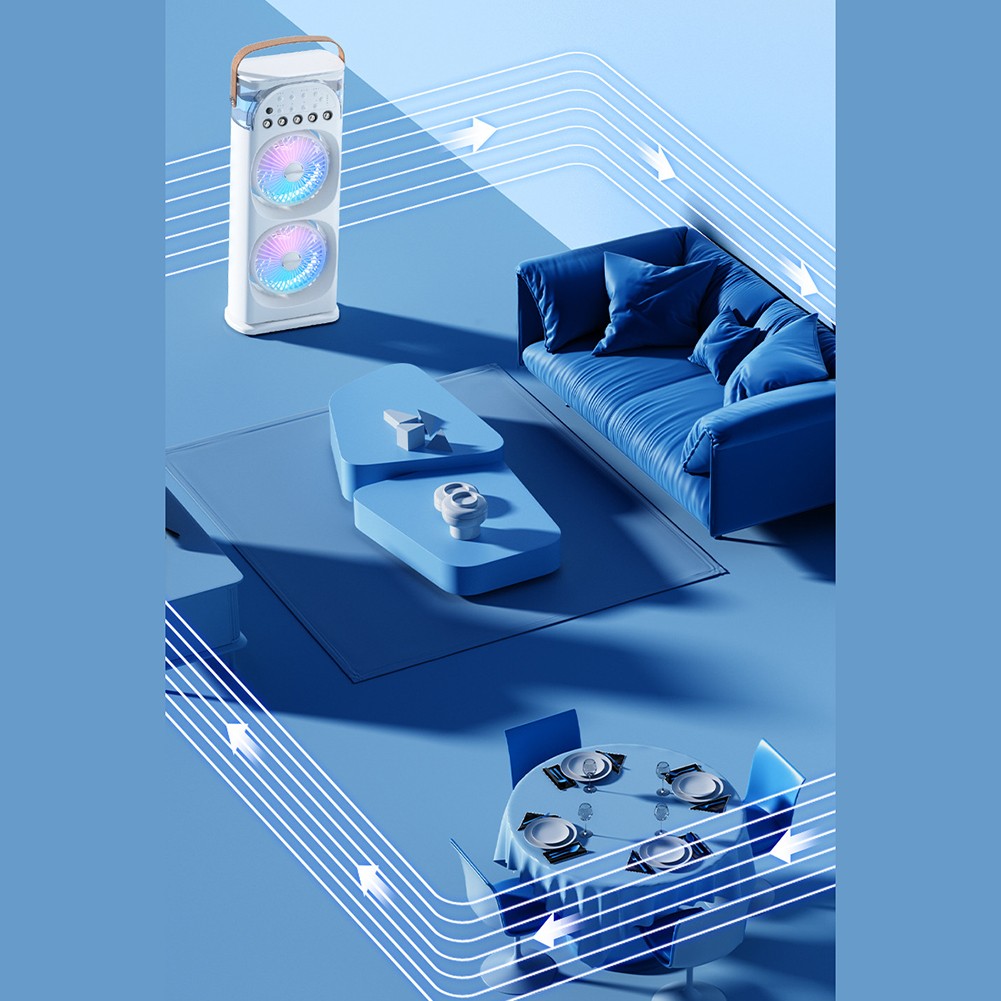 Innovative turbine cross-flow air duct, 120° automatic shaking head, 360° fan rotation, all-round coverage of cooling and air supply
