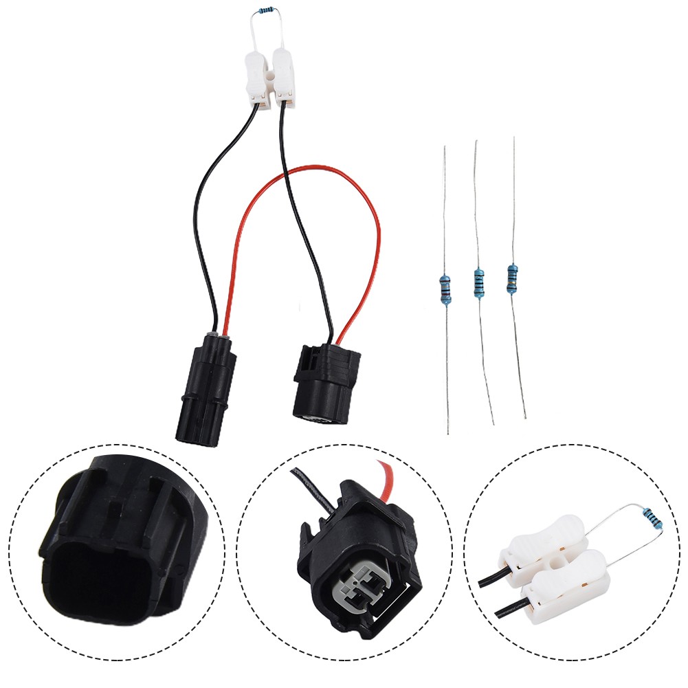 3) 4 verschiedene Widerstände -- 68 Ohm, 82 Ohm, 100 Ohm, 120 Ohm. Die verschiedenen Widerstände dienen zur Berücksichtigung für Abweichungen zwischen Fahrzeugkühlkomponenten wie Thermostaten, Sensoren, Kühlflüssigkeiten und -bedingungen sowie Kühlerbedingungen, da diese Unterschiede zu geringfügig unterschiedlichen Betriebstemperaturen führen können. Klima kann auch die Widerstandsauswahl beeinflussen