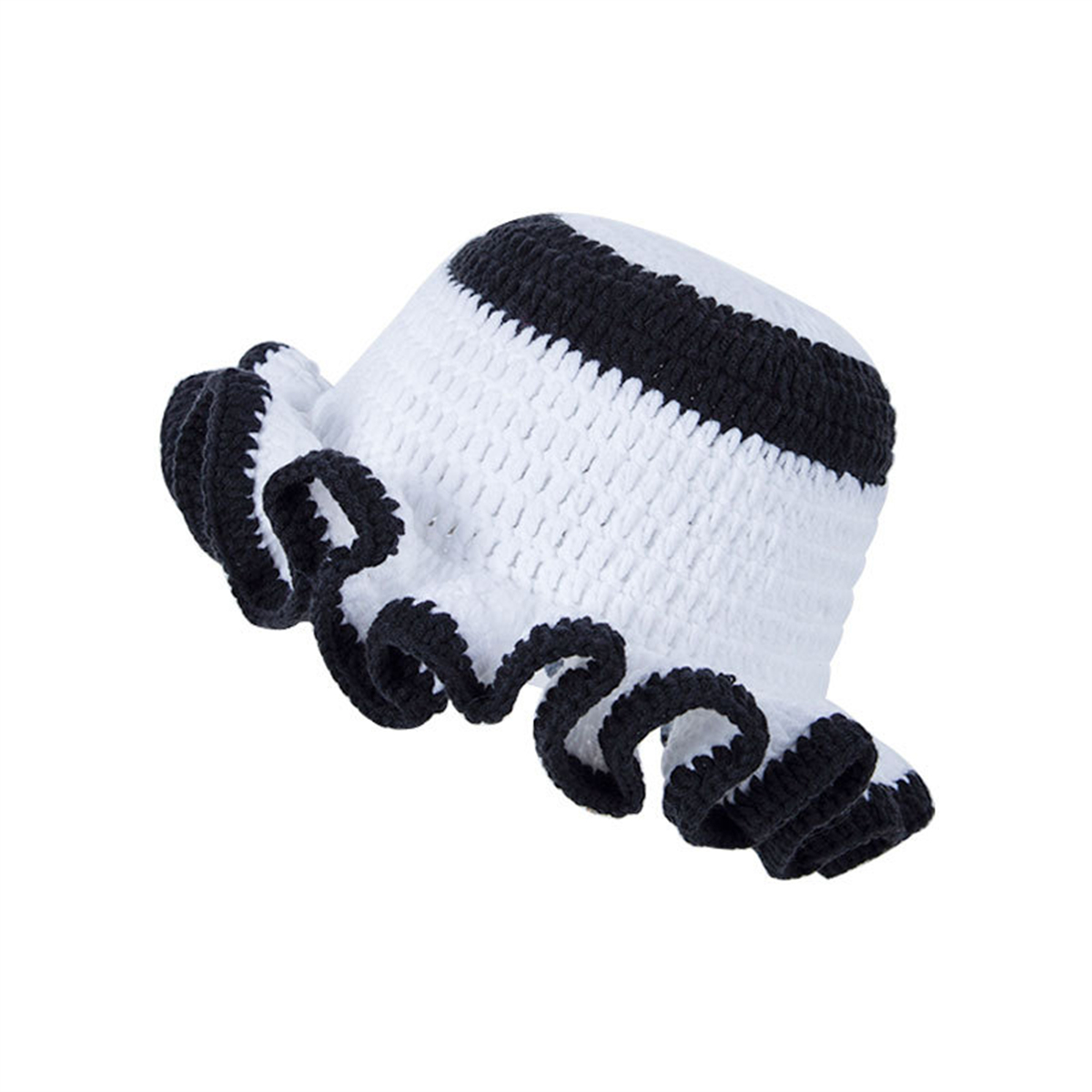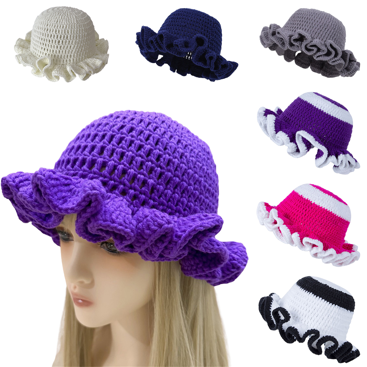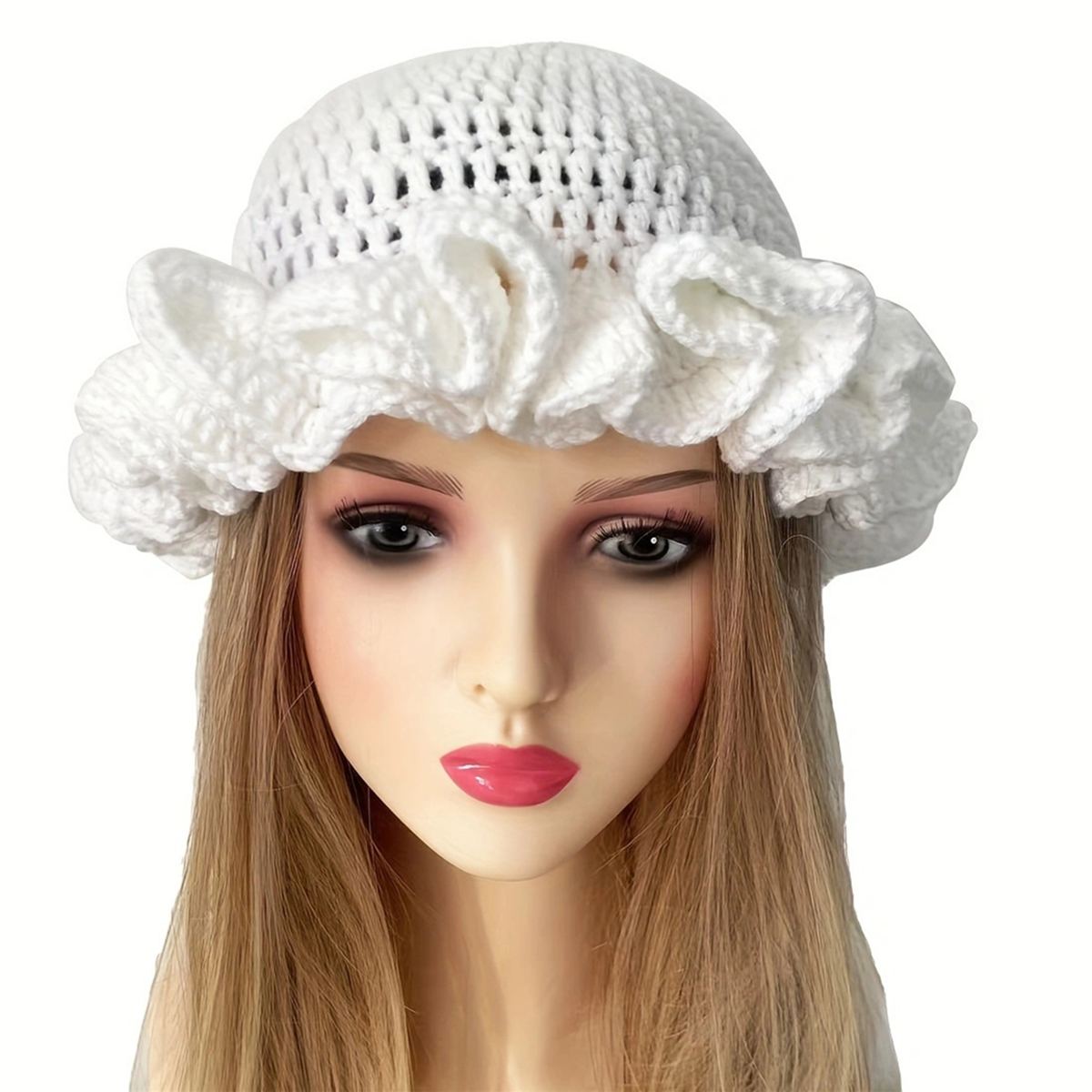 Woman Crochet Bucket Hat Ladies Ruffled Brim Fisherman Hat for Teens Windproof