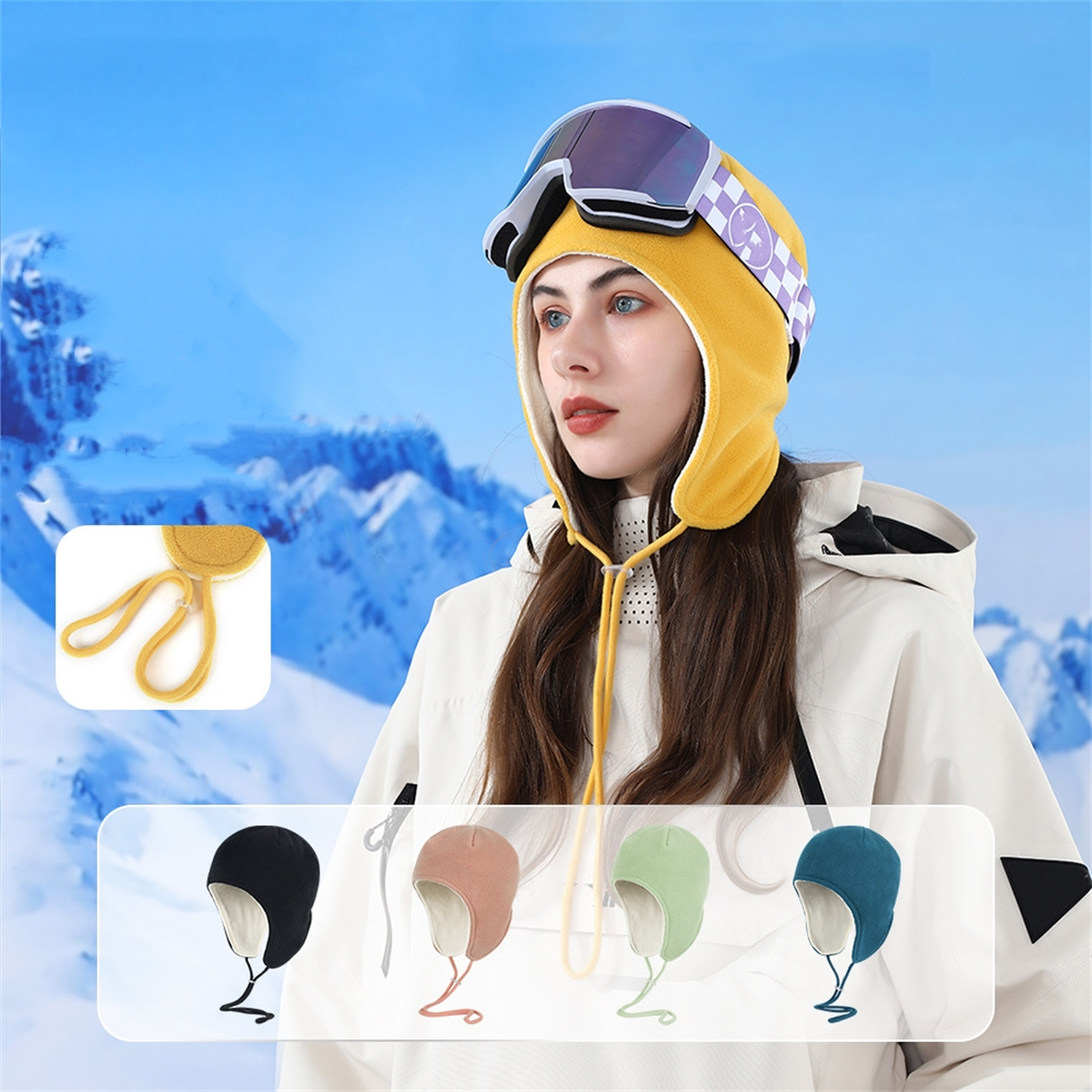 Mens Womens Windproof Thermal Warm Fleece Earflap Hat Outdoor Sports Skiing Cap