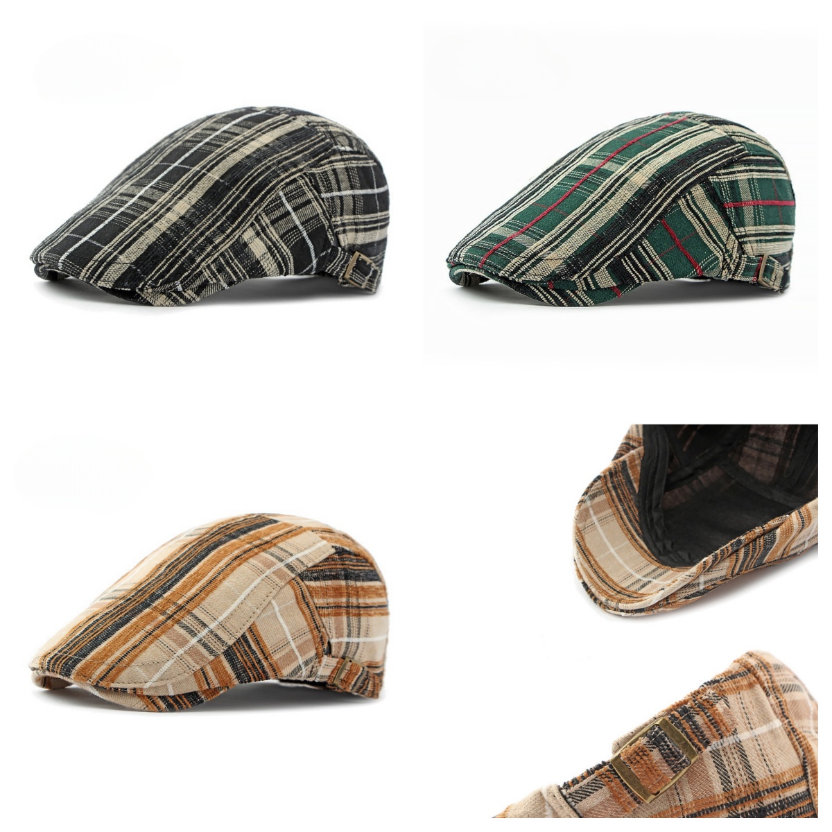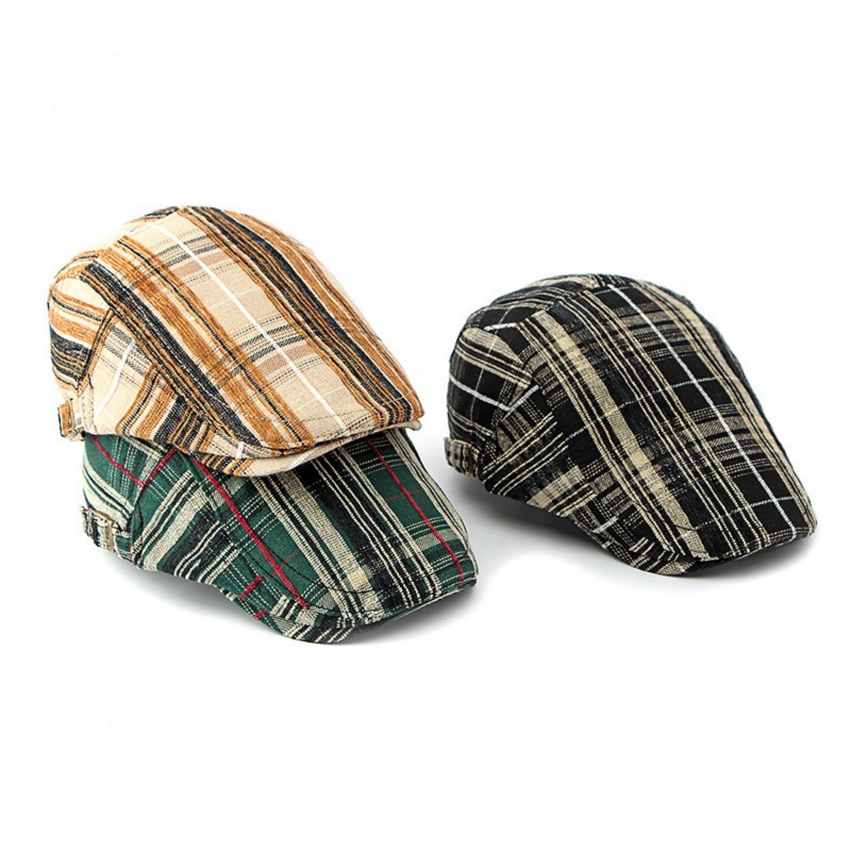 Men's Newsboy Hat Flat Ivy Gatsby Cap Adjustable Plaid Cabbie Driving Beret Hat