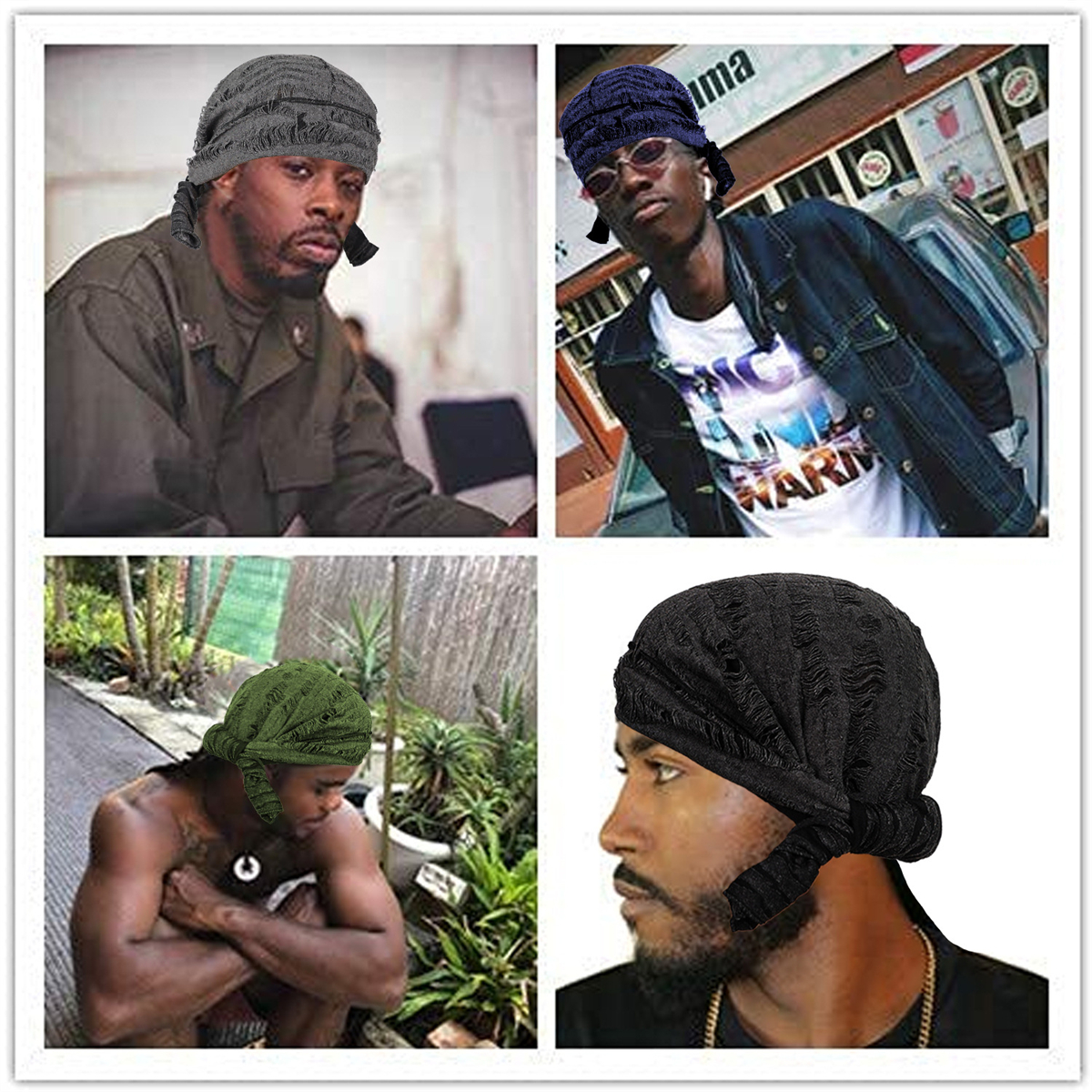 Men Pirate Bandana Hat Hip-hop Hat Beanie Turban Head Scarf Pre-Tied Durag Cap