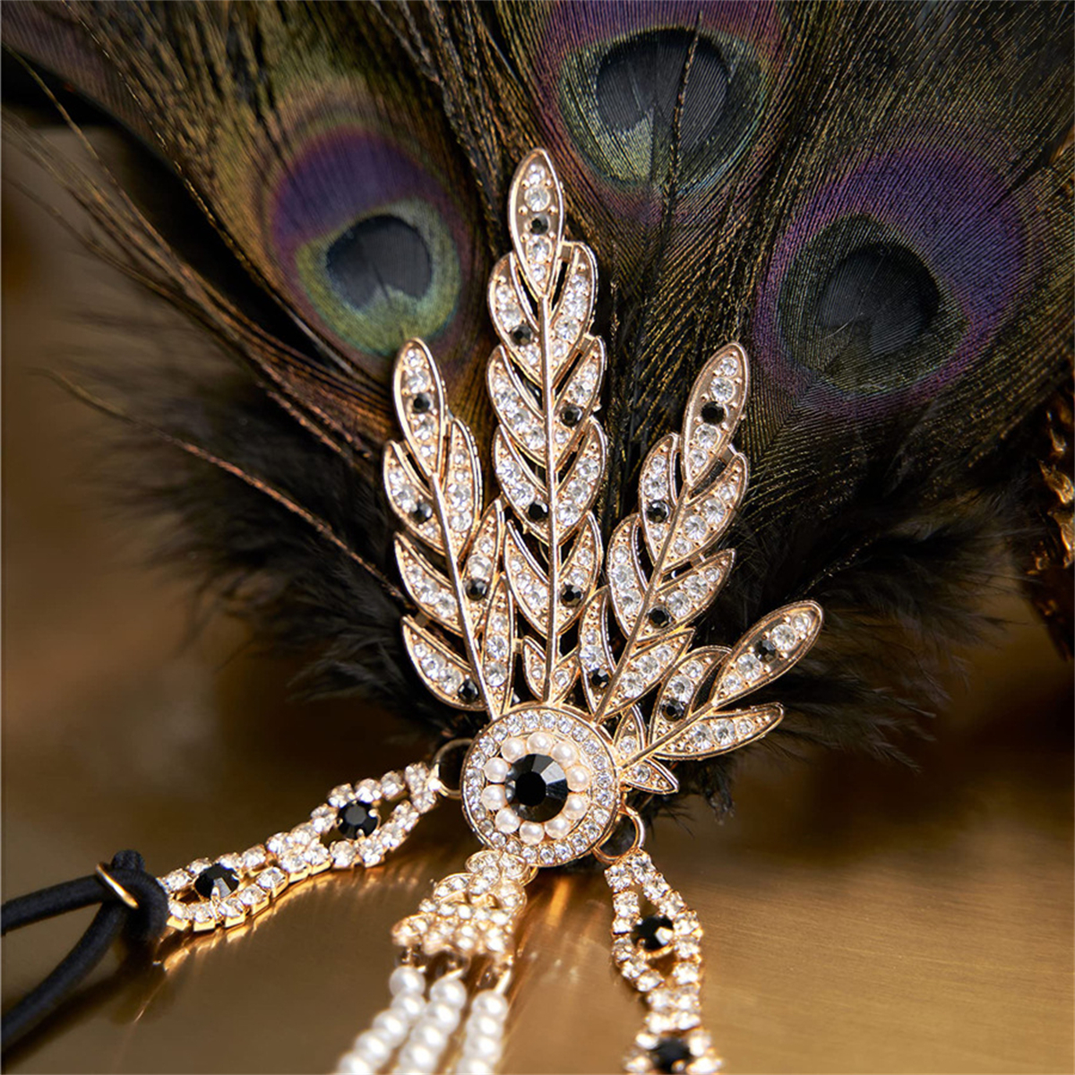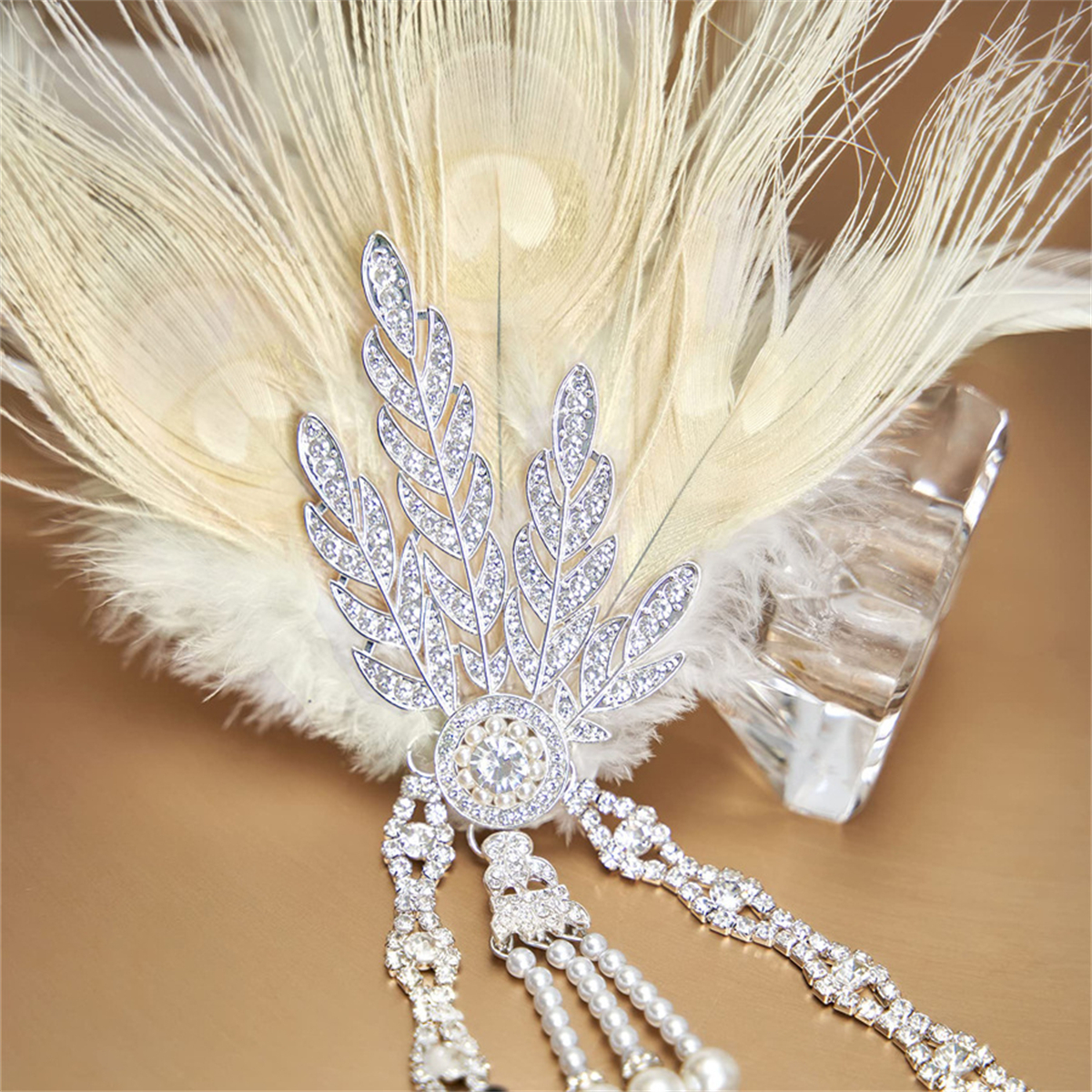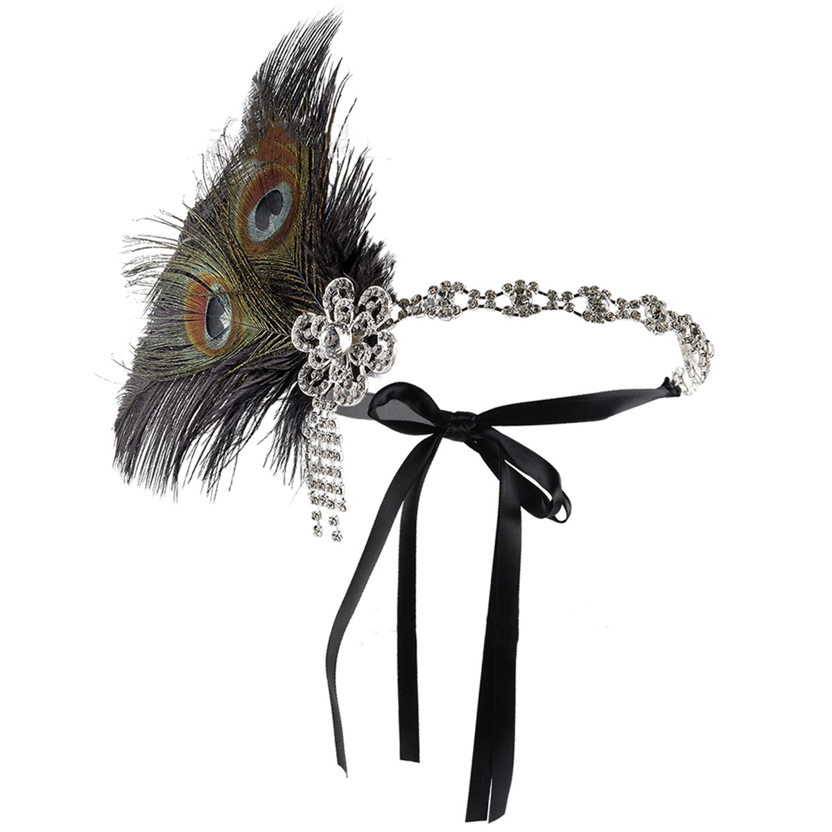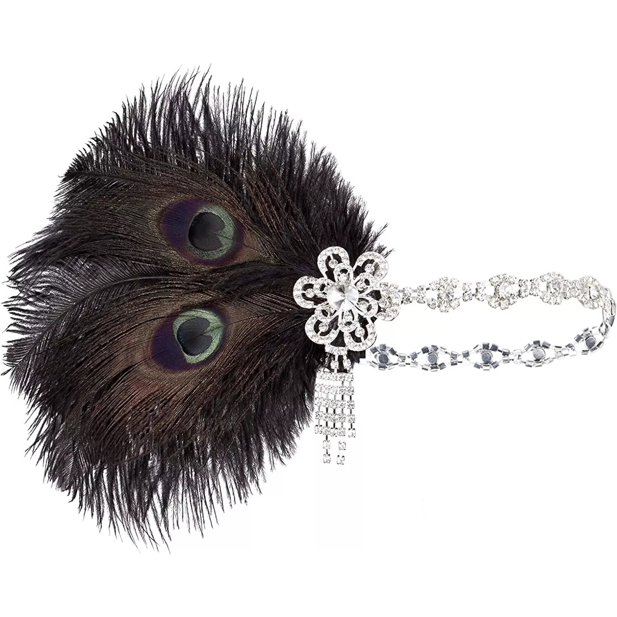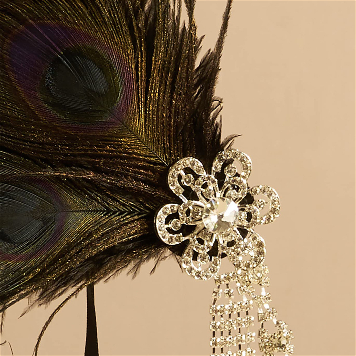 Women Flapper Headband Feather 1920s Costume Rhinestone Headpiece Headdress