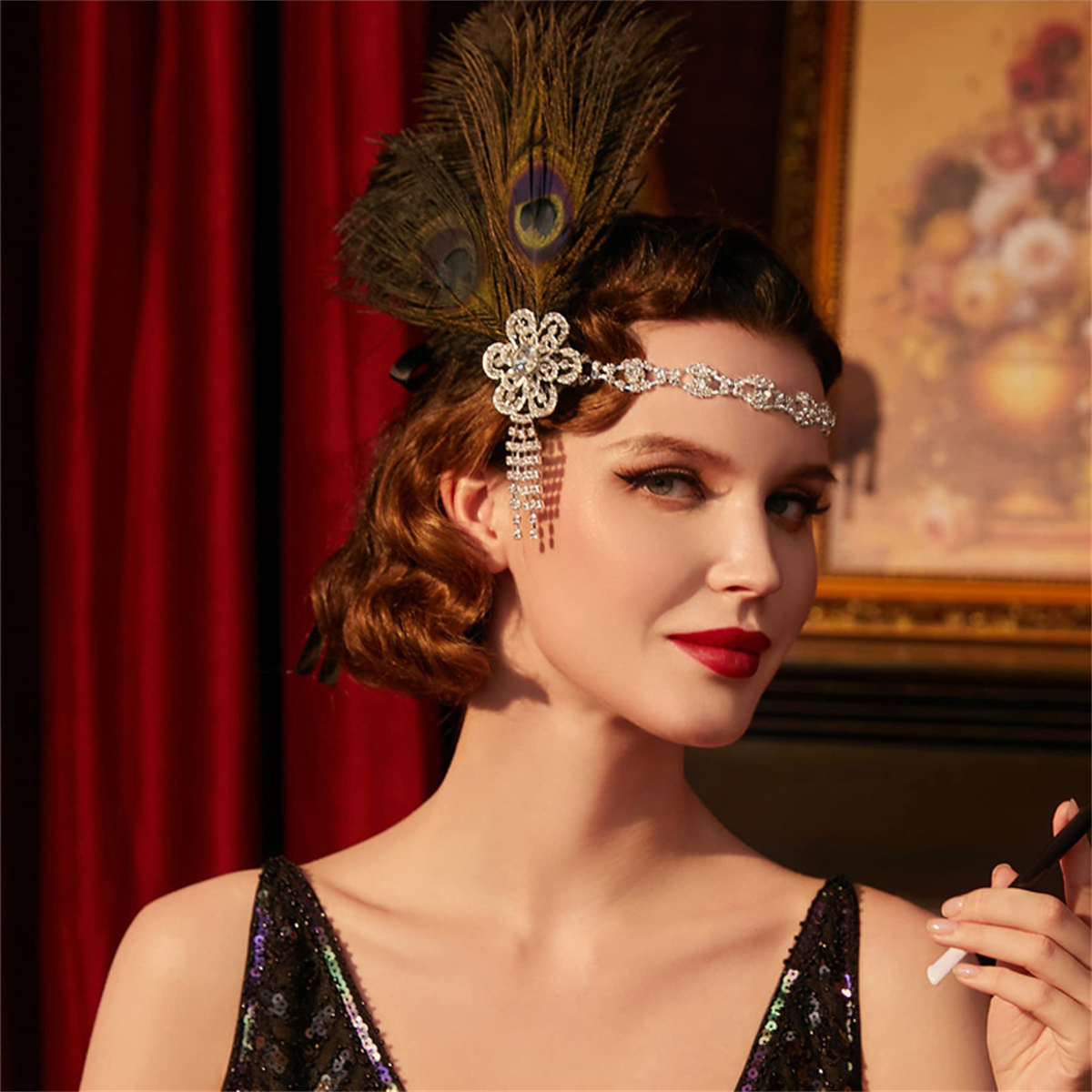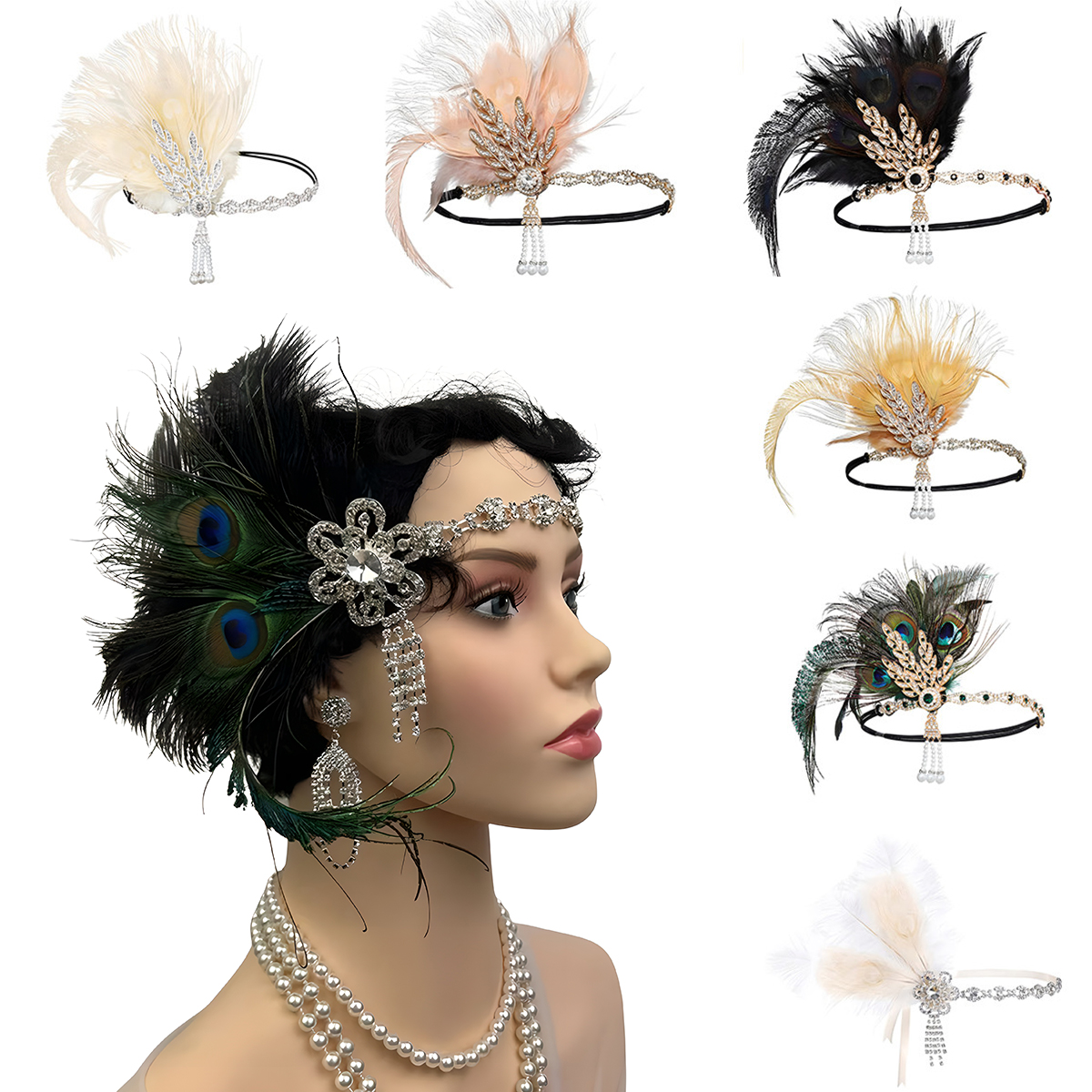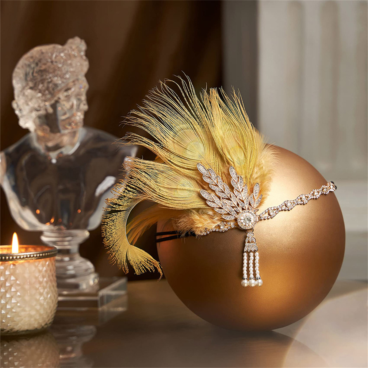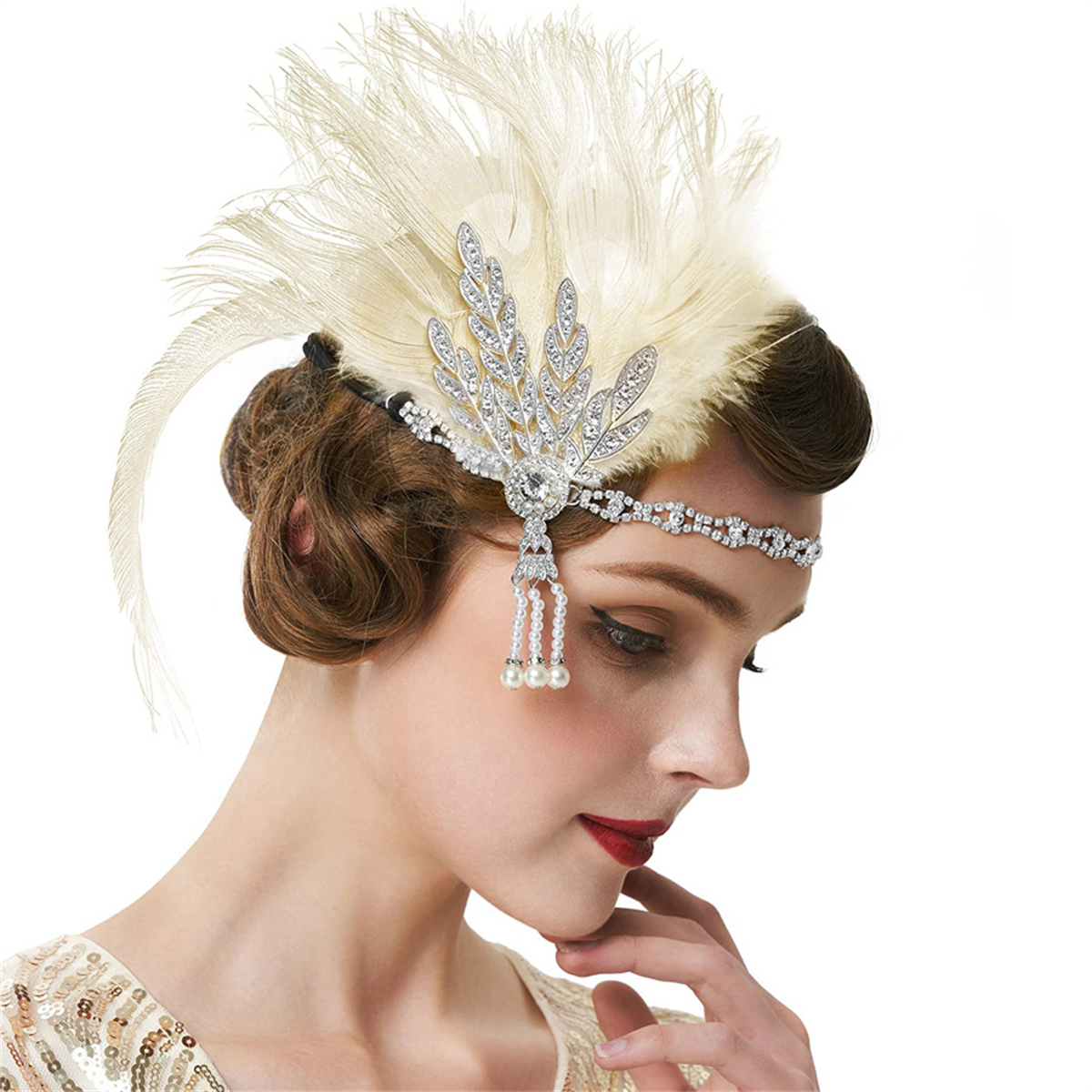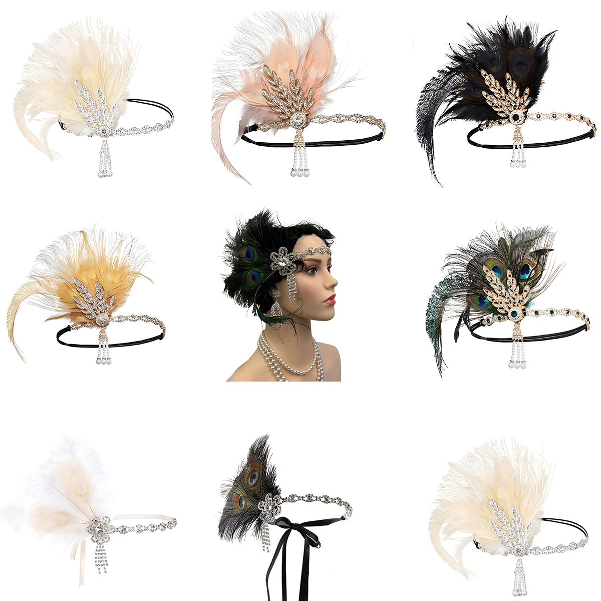 Women Flapper Headband Feather 1920s Costume Rhinestone Headpiece Headdress